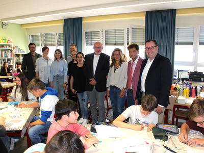 Im Foto oben von links nach rechts: Stefan Seehofer (Gesamtleiter des Cabrinizentrums), Eva Bürger (Lehrerin an der Cabrinischule) und Daniela Brückner (Lehrerin an der Aventinus Mittelschule), Josef Schirm (Cabrini-Schulleiter), Bettina Sußebach (Lehrerin an der Aventinus Mittelschule), Sandra Vitello (Kinderpflegerin/pädagogische Unterrichtshilfe an der Cabrinischule), Eugen und Sabine Daser von „Löwenzahn“, Mittelschul-Rektor Wolfgang Brey und Abensbergs 1. Bürgermeister Dr. Bernhard Resch. In der Galerie weitere Motive und nochmals das Hauptbild.