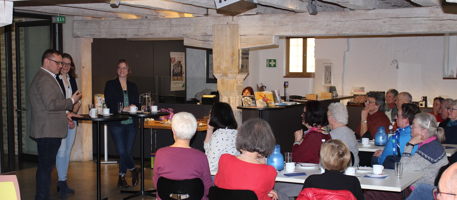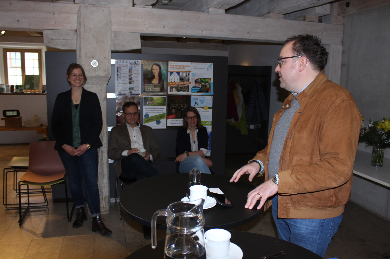 Deutlich wurde an diesem Nachmittag, dass Abensbergs Stadtmuseumsleiter das Haus als Ort der Begegnung sehen, an dem gesellschaftlicher Wandel ebenso sichtbar wird wie Kontinuitäten. Und gerade nach der Corona-Zeit sei es wichtig, das Stadtmuseum als „Haus für alle“ zu stärken. Frau Wichmann: „Das Ziel ist, Teilhabe zu schaffen.“ Bei Kaffee und Kuchen wurde auch nach Ende der Veranstaltung lebhaft weiter diskutiert. Eröffnet wurde die Veranstaltung von Abensbergs 2. Bürgermeister Dr. Bernhard Resch, der sich sehr freute, die bisherigen und die neue Leiterin des Stadtmuseums Abensberg begrüßen zu dürfen.