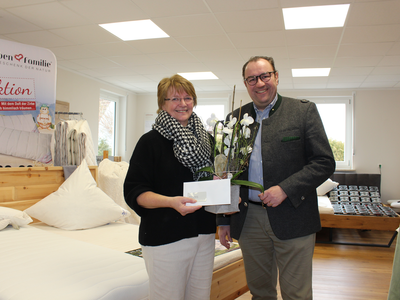 Gegründet wurde der Betrieb von Cilli Rottauscher, der Mutter von Frau Schmidleitner, als Maßstrickerei. 1984 wurde „Cillis Modeladen“ daraus. 1999 übernahm dann Tochter Gerlinde das Geschäft und führt es als „Naturbetten Schmidleitner“ weiter. Der Erfolg des Fachgeschäfts gründet sich auf die stete Weiterbildung aller Mitarbeiter und die Qualität der Waren. „Und es steht die ganze Familie dahinter“, wusste Bürgermeister Dr. Resch. Denn neben Ehemann Siegfried Schmidleitner ist die nächste Generation mit Sohn Thomas und Ehefrau Simone bereits voll dabei.