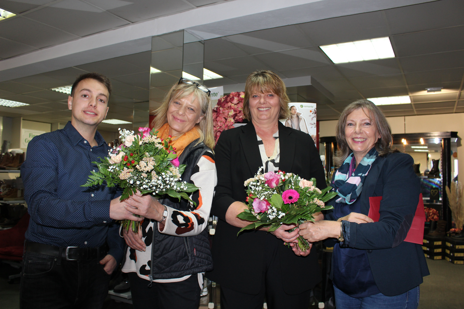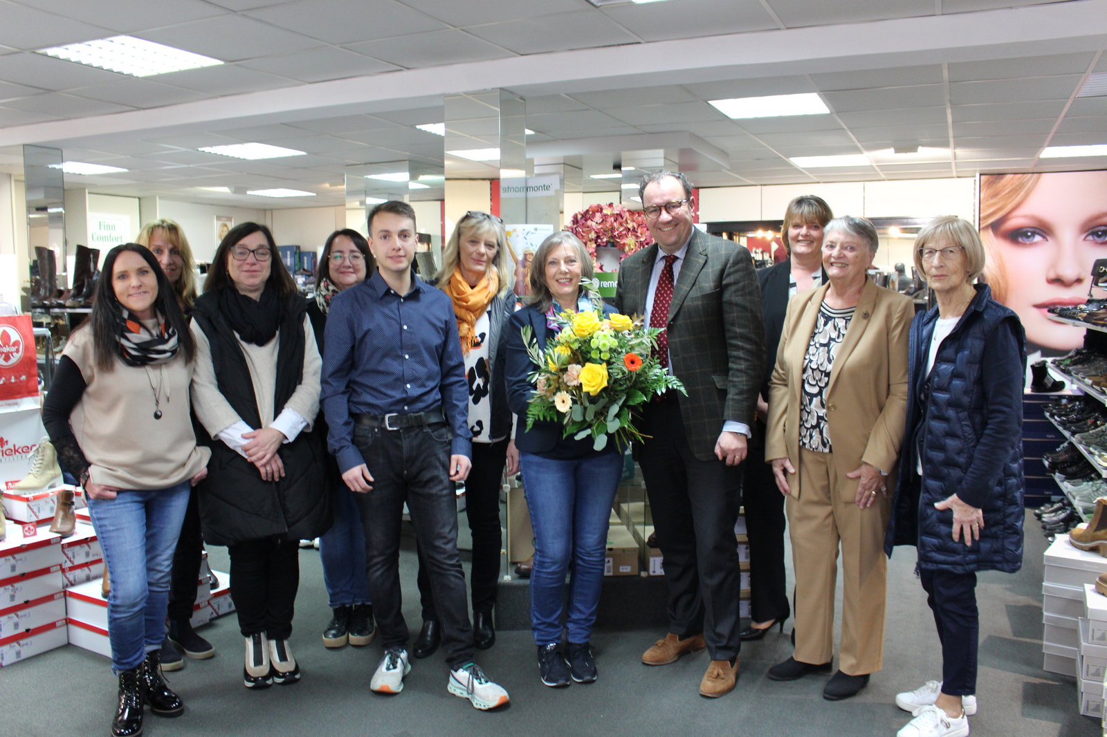 Insgesamt hat das Schuhmacherhandwerk seit 95 Jahren Tradition im Familienunternehmen Schäffer. Die jahrzehntelange Kompetenz fließt auch heute noch in die Kundenberatungen mit ein. Langfristig zufriedene Kunden ist die Maxime von Johannes Schäffer. Und deshalb ist er mit dem gesamten Team sehr stolz darauf, dass Schuh Schäffer sehr viele Stammkunden hat. Johannes Schäffer: „Das ist besonders unserem kompetenten Team zu verdanken.“ Bereits jetzt arbeitet die vierte Generation im Betrieb mit und auch Johannes Schäffer jun. kennt viele Abensberger Kunden. Dass die Unternehmensnachfolge gesichert ist, das freute auch Abensbergs 1. Bürgermeister Dr. Resch, der den Damen einen Strauß Blumen und ein Gratulationsschreiben der Stadt brachte.