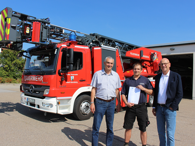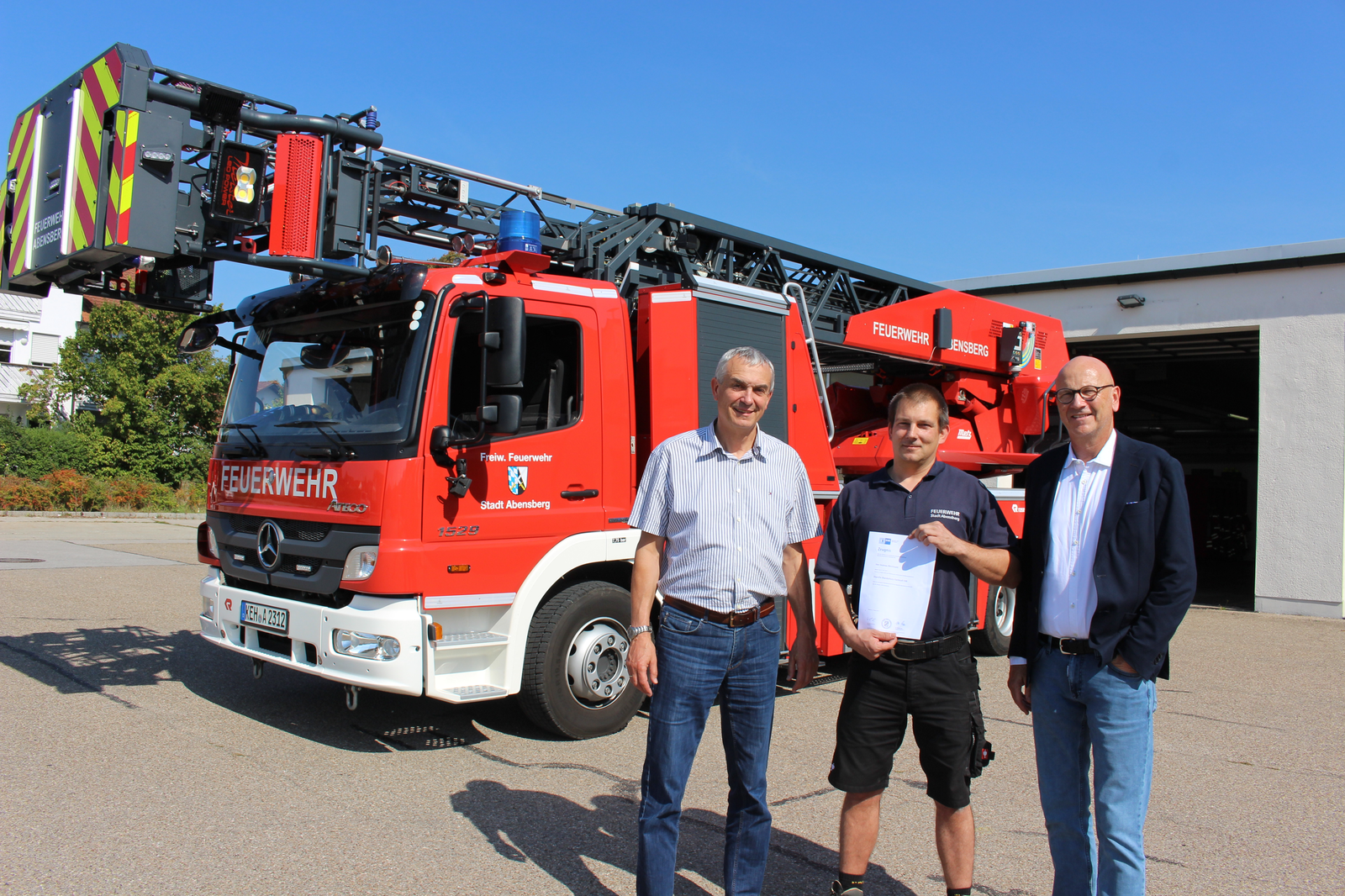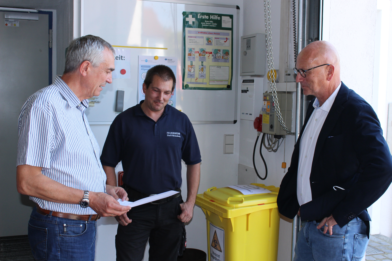 Die Stadt Abensberg hat dem hauptamtlichen Gerätewart Andreas Weichwald zum Fortbildungsabschluss als „Geprüfte Brandschutz-Fachkraft“ gratuliert. 1. Bürgermeister Dr. Uwe Brandl und Personalleiter Franz Piendl brachten dem 44-Jährigen die Urkunde in die Abensberger Stützpunktfeuerwehr, wo neben Weichwald zwei weitere hauptamtliche Gerätewarte beschäftigt sind.