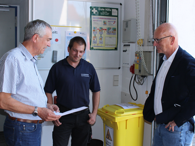 Im Bild oben von links Franz Piendl, Andreas Weichwald und Dr. Uwe Brandl. In der Galerie die Beteiligten im Gespräch (zwei Motive) und nochmals das Hauptbild.