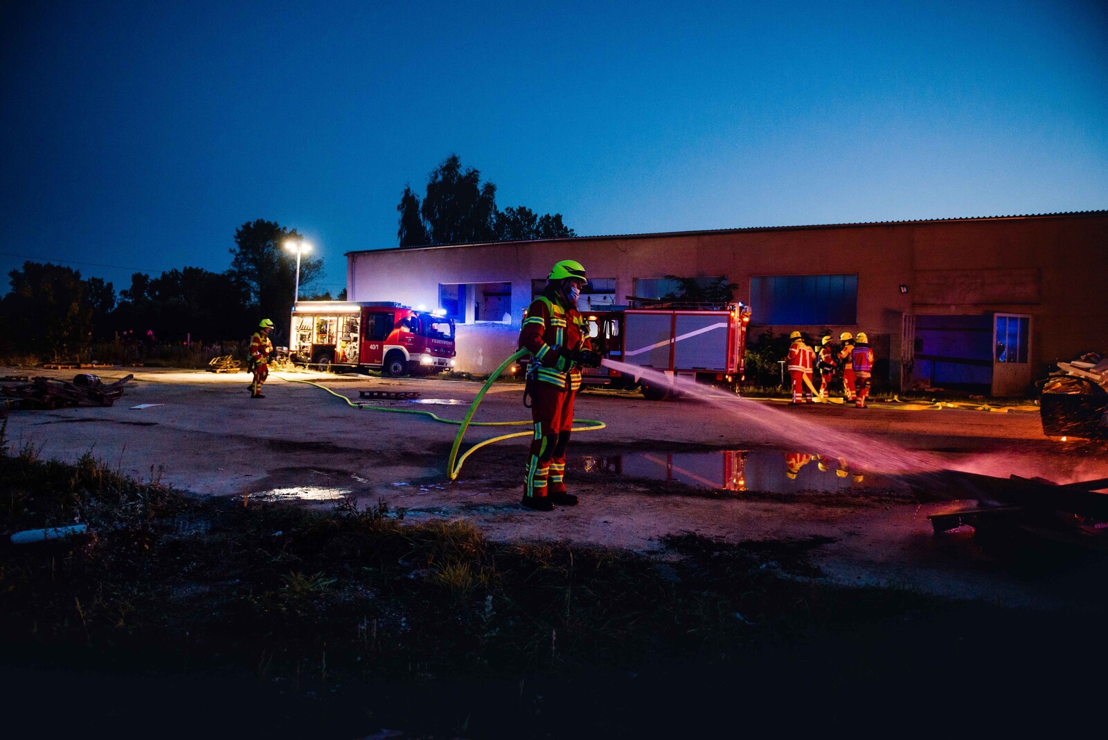 Im Foto oben eine Szenerie der Großübung. Im ersten Bild der Galerie die beiden hauptverantwortlichen Planer, Tobias Münter und Christopher Neumeyer. Dazu weitere Fotos vom Abend.