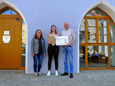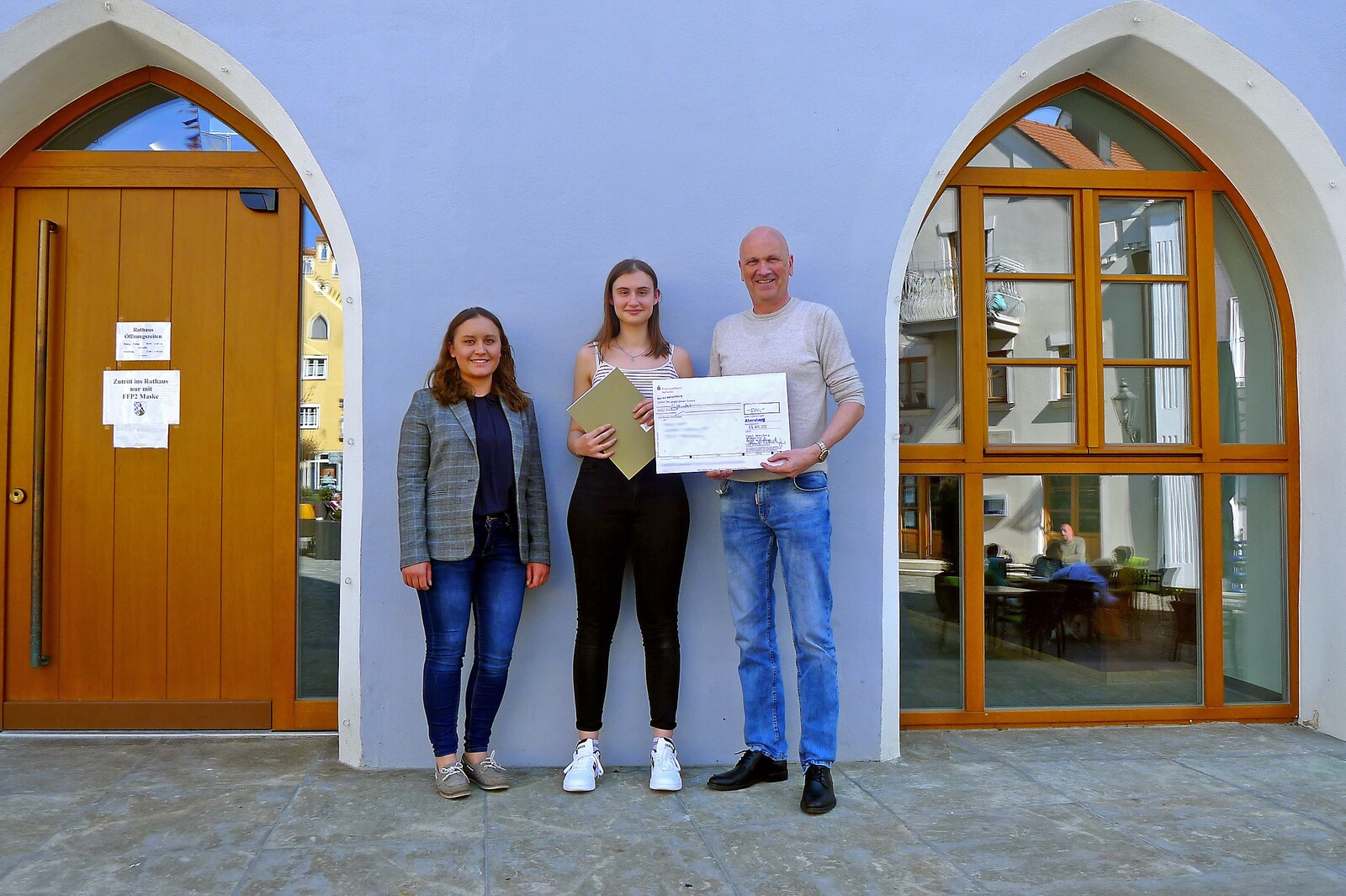 Die Schülerin nimmt von Ende August bis Ende November diesen Jahres an einem deutsch-französischen Schüleraustausch über das Brigitte-Sauzay-Programm teil. Um Marie bei dieser sprachfördernden Maßnahme während ihres Aufenthalts in Frankreich zu unterstützen, erhielt sie einen Verrechnungscheck im Wert von 500 Euro. 1. Bürgermeister Dr. Uwe Brandl überreichte der Schülerin eine Urkunde und den Preis inklusive Glückwunschkarte. Er gratulierte ihr herzlich. Die Preisträgerin sicherte Natascha Kästner von der Stadtverwaltung einen Erfahrungsbericht über ihren Aufenthalt in Frankreich zu.