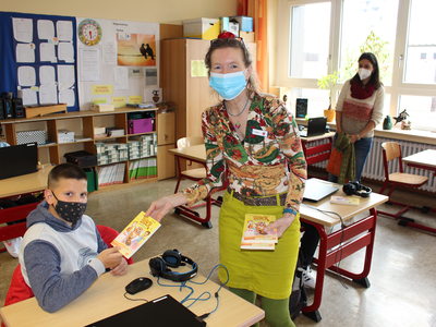 So konnten alle einen spannenden und gruseligen Abschnitt aus dem Buch „Die Monsterprüfung“ mitverfolgen, vorgelesen von Silke Nagel. Sie empfahl: „In diesen Zeiten müsst ihr eure Phantasie benutzen. Lest und geht so auf phantastische Reisen.“ Frau Nagel verteilte anschließend Gratisexemplare des Comicromans „Biber undercover“. Rektor Wolfgang Brey dankte ihr herzlich für die seit 16 Jahren bestehende Partnerschaft.