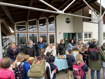 Während die Kinder eifrig gelaufen waren, war auch der Elternbeirat nicht untätig gewesen. Fleißig hatten die freiwilligen Helfer Butterbrote mit Kresse und Schnittlauch geschmiert und Apfelstücke her geschnitten. Diesen gesunden Snack ließen sich die Kinder nach dem Lauf sichtlich schmecken. Frisch gestärkt machten sich die Jungen und Mädchen anschließend auf den Rückweg zur Grundschule. „Sogar dafür reichte die Kondition noch aus“, so die Rektorin Andrea Brandl begeistert.