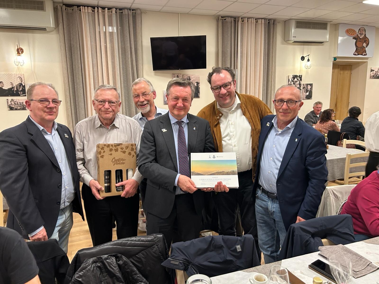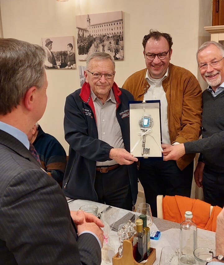 Bei einem abendlichen Festessen im Kloster San Daniele betonten beide Seiten das gute Miteinander. Eine große Auszeichnung war die Überreichung des Stadtschlüssels von Lonigo an die Abensberger Stadtspitze. Dies gab es bisher nur einmal im vergangenen Jahr, als Kardinalstaatssekretär Pietro Parolin diese hohe Ehre zuteilwurde. Eine große Freude war das Wiedersehen mit Altbürgermeister Giuseppe Boschetto, mit dem man 1999 die Partnerschaft abgeschlossen hatte. Boschetto ist nach wie vor sehr um die Partnerschaft bemüht und hält gute Beziehungen zu seinen Abensberger Freunden.