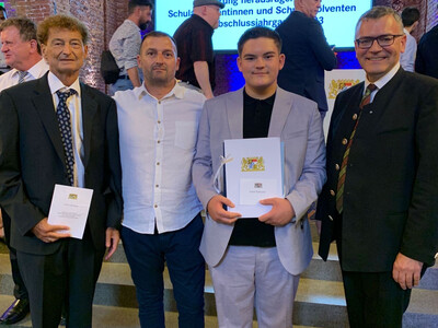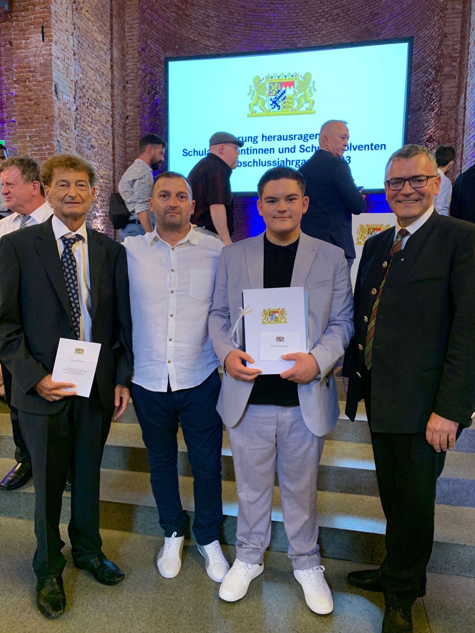 Der Abensberger Mittelschüler Ensar Rahmani wurde Ende Juli auf Einladung von Ministerpräsident Markus Söder in München von Staatsminister Florian Herrmann und Kultusminister Michael Piazolo für seinen ehrenamtlichen Einsatz und seine schulischen Leistungen ausgezeichnet. Der 15-jährige Ensar gehörte damit zu einem Kreis an ausgewählten Schülerinnen und Schülern aus allen Schularten und allen bayerischen Bezirken, die zu dieser Absolventenehrung eingeladen worden sind. Die Aventinus Mittelschule Abensberg ist sichtlich stolz auf den jungen Herrn, der nach einem hervorragenden Abschluss in der M9 nun die M10 besucht. Er ist seit über drei Jahren Schülerlotse, Klassensprecher und „Sport nach 1“-Mentor, womit er seinen Mitschülerinnen und Mitschülern freies Sporteln während der Schulzeit ermöglicht. Warum er das alles macht? „Es lohnt sich“, sagt Ensar.
