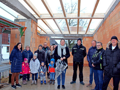 Begonnen wurde in den Sommerferien 2021 mit dem Aushub und den Anbindungsarbeiten der Infrastruktur (Heizung, Strom, Kanal) durch die Firma Teubl, die für die Baumeisterarbeiten verantwortlich zeichnet. Und mit Peter Ehlis „einen Spitzen-Bauleiter“ geschickt hat, so Schmid. Auch Florian Hofbauer, Juniorchef des Neustädter Holzbau-Unternehmens, wusste mit zeitweiligen Lieferengpässen so umzugehen, dass alles rechtzeitig fertig geworden ist. Architektin ist Hana Landfried vom Abensberger „L1 Architekturbüro“, auch sie war beim Baustellentermin mit dabei. Und Kindergartenleiterin Michaela Rumpel hatte gleich Kinder und Eltern zum Termin geladen. „Wir freuen uns sehr über die Investition der Stadt Abensberg“, so Frau Rumpel. Bürgermeister Dr. Brandl bemerkte abschließend: „Unsere Kinderbetreuung und –bildung hat die guten Noten der Eltern mehr als verdient. Wir sorgen für gute räumliche Bedingungen, aber unsere Angestellten sorgen für die Kinder.“ Dafür gab es seinerseits ein herzliches Dankeschön.