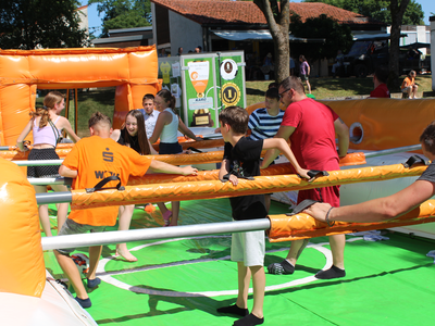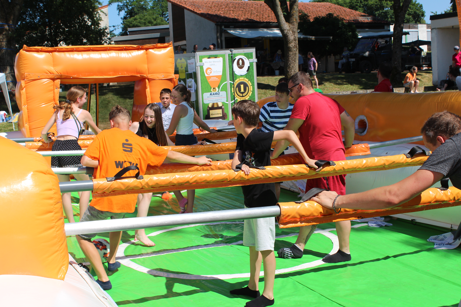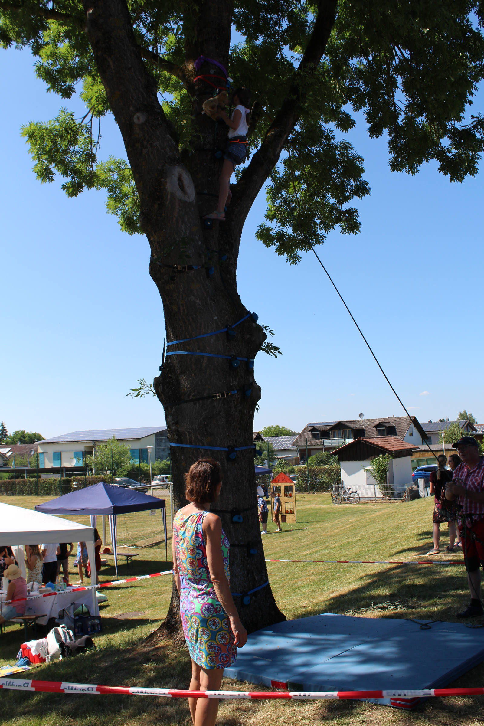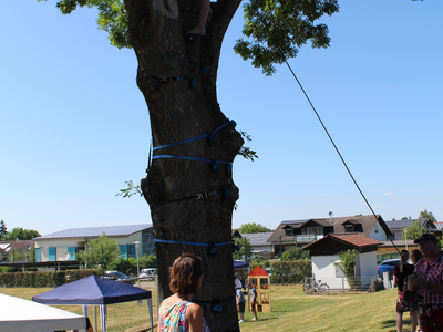 Foto oben: Auf dem Sportplatz gab es die unterschiedlichsten Angebote. Die Bilder in der Galerie: Am Glücksrad des Elternbeirates gab es keine Verlierer - Tolle Stimmung im Lebendkicker - Beim Baumklettern sah man auch viele mutige Mädchen - Beim Zielspritzen der Feuerwehr erfreute man sich auch am kühlen Nass - Der Männergesangverein Harmonie unter der Leitung von Franz Brunner - Die Holledauer Gaudeburschn spielten zur Unterhaltung auf - Glanzvoller Auftritt der Babonia.