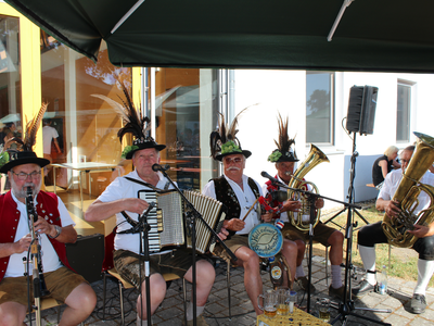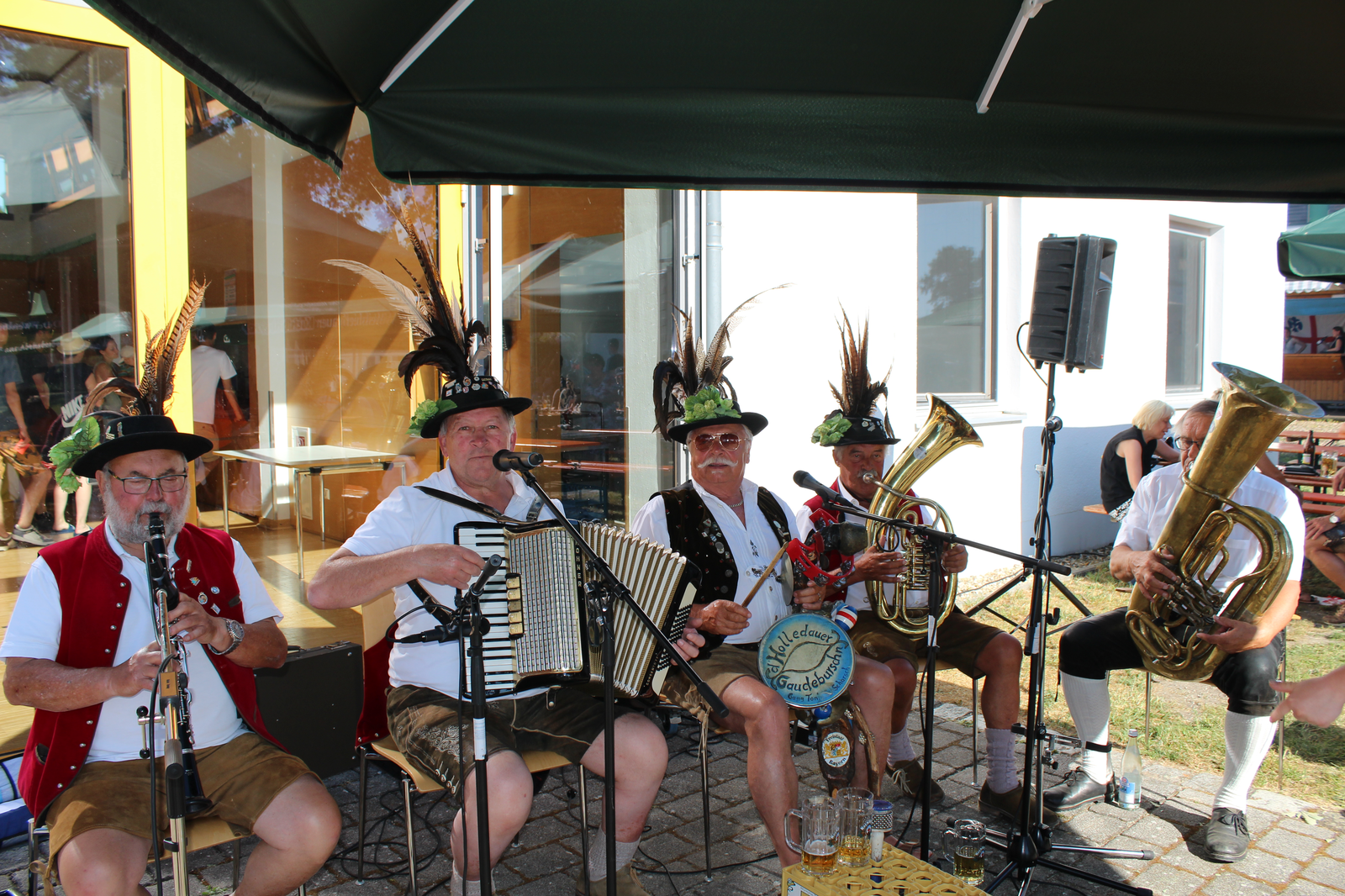 Am späten Nachmittag klang der Tag mit einem „Hoagarten“ aus. Gesamtleiter Bernhard Resch dankte den mitwirkenden Vereinen für die Bereitschaft „an einem Strang zu ziehen“ und Gemeindereferentin Brigitte Wieder freute sich über dieses „tolle Zeichen der Gemeinschaft und Inklusion“ und lobte die vielen Helfer. Den unterhaltsamen Auftakt machte der Männergesangverein Harmonie, die Lieder waren teilweise den hohen Temperaturen angepasst wie „Brennend heißer Wüstensand“. Später war der Auftritt der Babonia eine wahre Augenweide. Die verstärkten „Holledauer Gaudeburschn“ sorgten für zünftige musikalische Unterhaltung. Das Wetter war trotz der tropischen Temperaturen dank der vielen Sonnenschirme einigermaßen erträglich. Manche Gäste zogen aber den Schatten im Cabrizio vor. Und so blieb man noch bis in die Abendstunden in geselliger Runde beisammen.