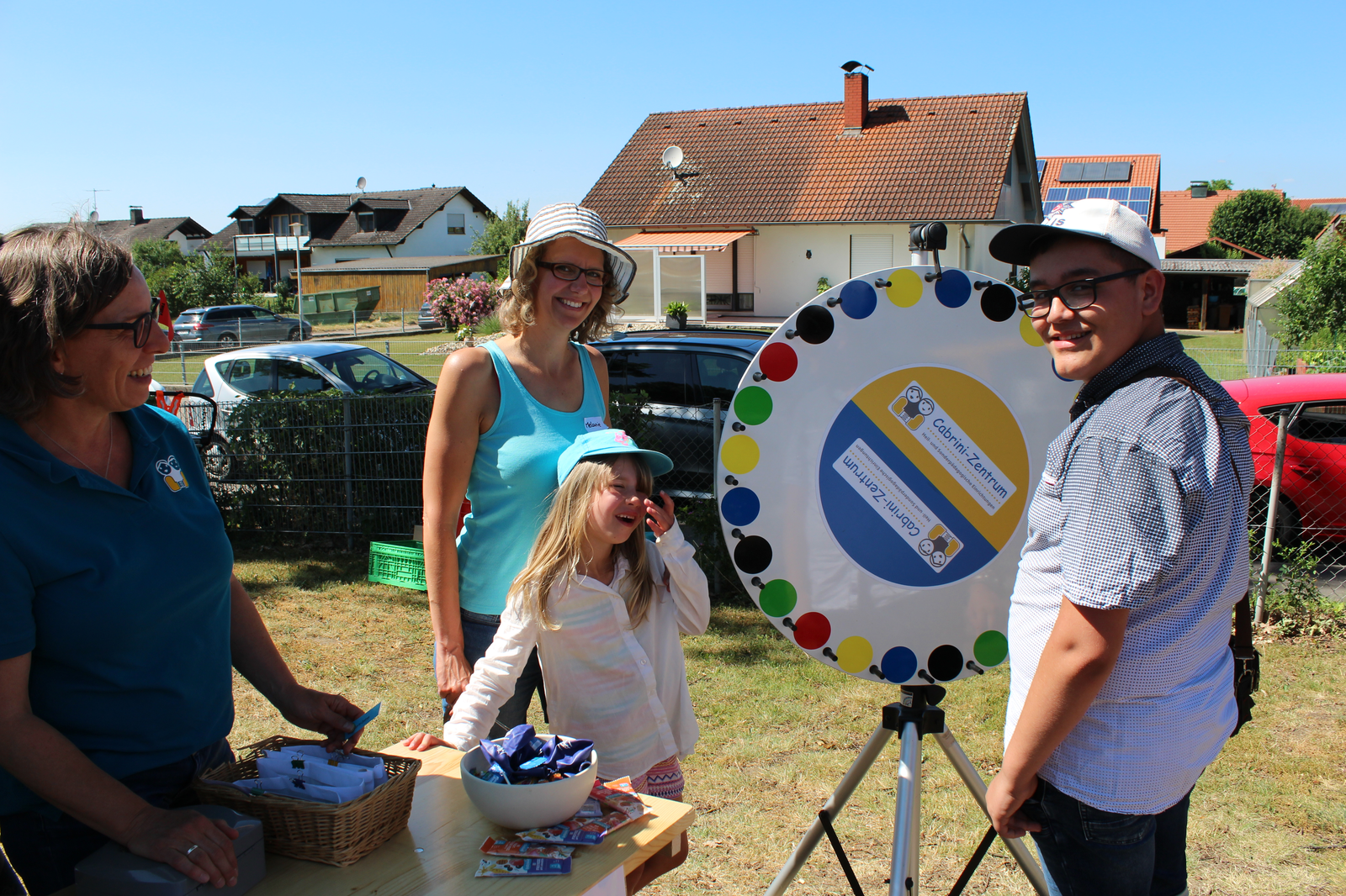Im Anschluss an den Gottesdienst ging es zum Mittagessen. Den ganzen Tag über sorgten der Frauenbund, die LWO, der SKC, die Landjugend, die Feuerwehr und die Fußballabteilung des TSV für das leibliche Wohl der Gäste. Ein weiterer Höhepunkt war der Spielenachmittag im weiten Areal um das Cabrizio. Rund 20 Spielestationen und Bastelstände, wie Eierlauf, Zielspritzen, Baumklettern , Glücksrad, ein Lebend-Kicker und Dart, vor einigen Tagen hatte Thomas Resch noch unentgeltlich eine Hüpfburg zur Verfügung gestellt, boten für Kinder und Jugendliche vielfältige Betätigungsmöglichkeiten. Immer wieder sah man auch Erwachsene, die sich bei dem einen oder anderen Spiel versuchten. Auf großen Zuspruch stieß das Angebot, zusammen mit Gesamtleiter Bernhard Resch das Cabrini-Zentrum und das Schloss zu erkunden und hinter die Kulissen zu schauen.