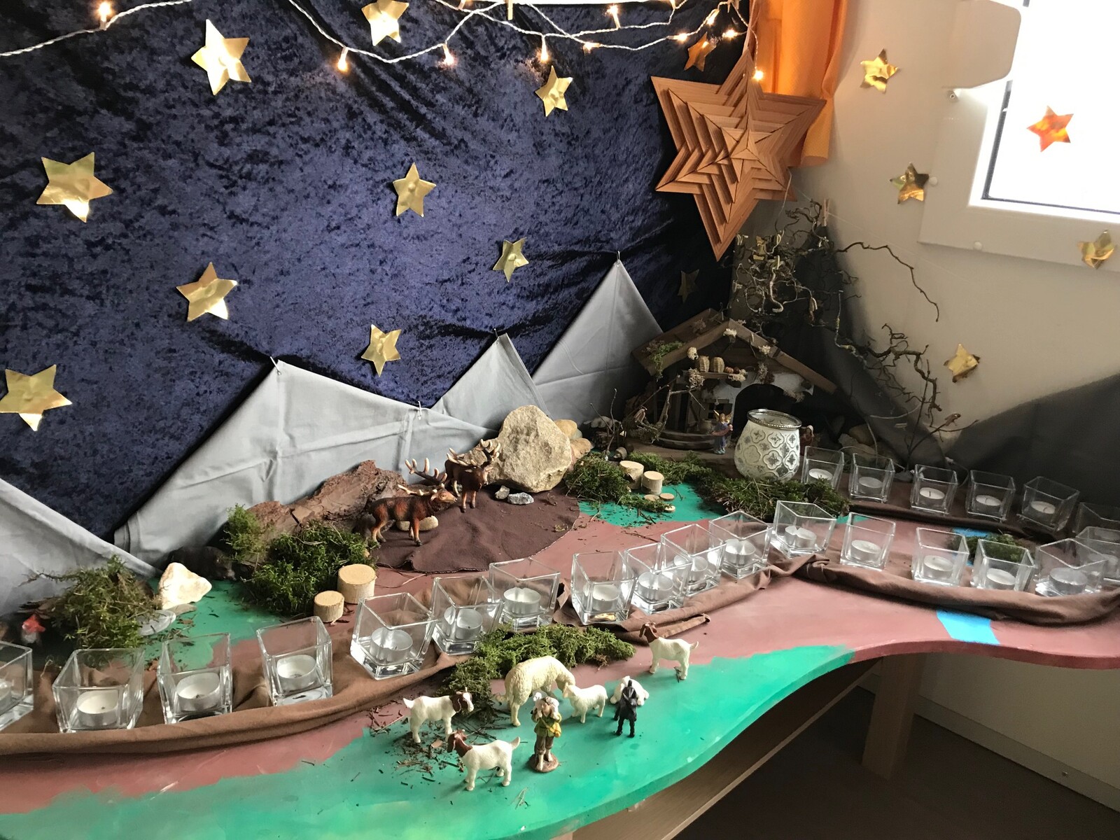 Das Team des städtischen Kindergartens "Regenbogenland" hat sich mit einem schönen Gedicht und Bildern der Krippen in den Gruppenräumen in die Feiertage verabschiedet.