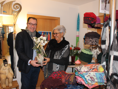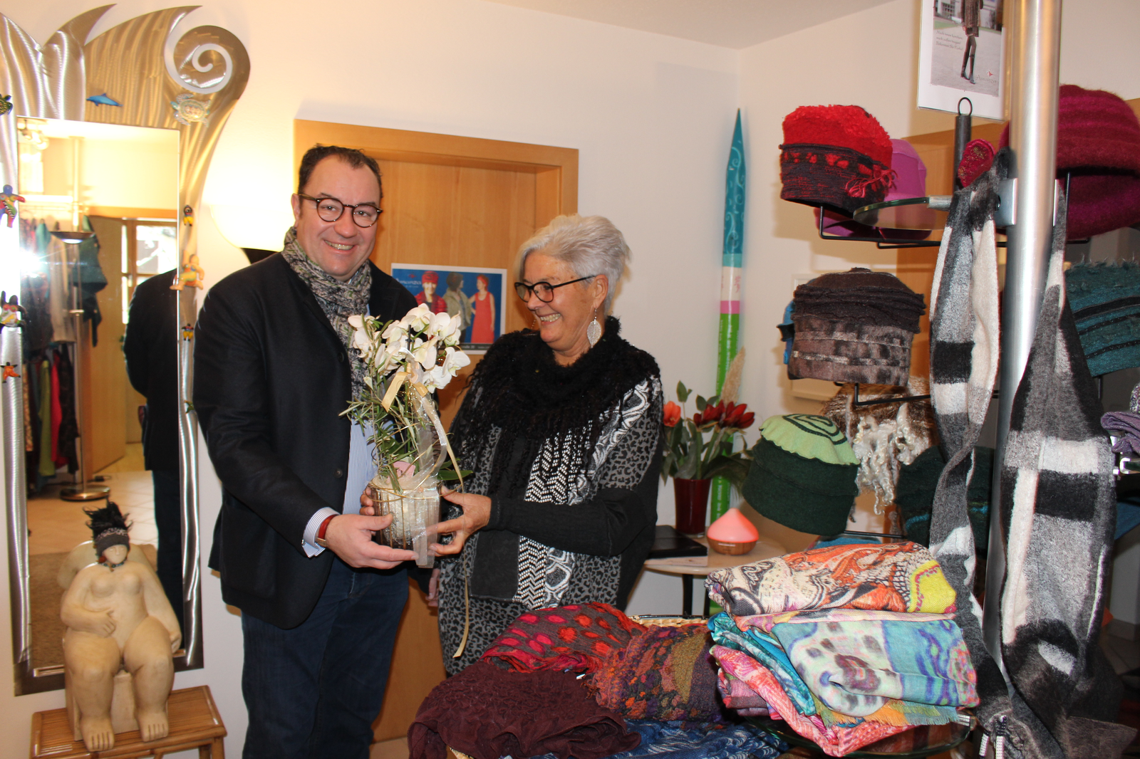 Gut angezogen im Alltag und das nicht zu teuer, ist ihre Devise. Und: wohlfühlen soll man sich! Mitglieder der Band „Wamaluru“ haben sich von ihr einkleiden lassen, ein Abensberger Ärzteteam verlangte Arbeitskleidung jenseits der üblichen weißen Kittel, auch Hochzeitspaare lassen sich bei ihr gerne etwas Besonderes für den besonderen Tag schneidern – und da ist man bei „AMANZA“ an der richtigen Adresse. Bürgermeister Dr. Resch war beeindruckt von Umfang und Qualität der Modeartikel: „Sie bieten wirklich etwas Besonderes, in dem man sich wohlfühlt und gut ausschaut!“ Er wünschte weitere erfolgreiche Jahre und überreichte ihr eine Orchidee.