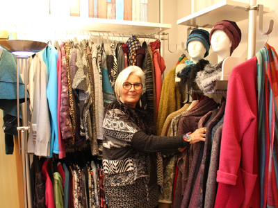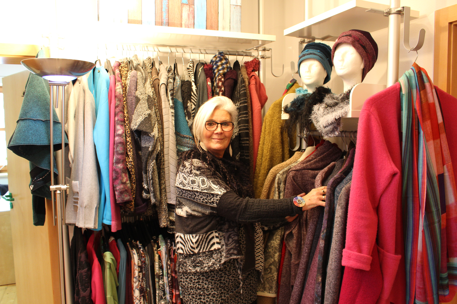 Vor 25 Jahren hat die studierte Sozialpädagogin in München bei der Gründung des Frauenkulturhauses mitgeholfen. Schon damals fertigte sie als Hobby Wollmäntel an, mit Innenfutter und Seidenmalerei. Als sie diese im Frauenkulturhaus zeigte, schlug die Geburtsstunde des Labels „AMANZA“. Einen solchen Mantel hat sie heute noch, der Rest ist natürlich längst verkauft. Sie selbst liebt schöne, gerne auch bunte Stoffe, und so mögen es auch ihre Kunden. Die wurden schnell mehr, so dass Frau Mager ihren Beruf als Sozialpädagogin aufgab. Mit dem Umzug der Familie nach Abensberg richtete sie sich gleich ein Atelier, ihre Nähwerkstatt, ein. Und als ein alteingesessenes Hutgeschäft in Abensbergs Innenstadt schloss, kamen die Kunden zu ihr; sie hatte Alternativen zu bieten und dazu Jacken, Pullies, Schals, Stulpen, Tücher, gerne farblich abgestimmt.