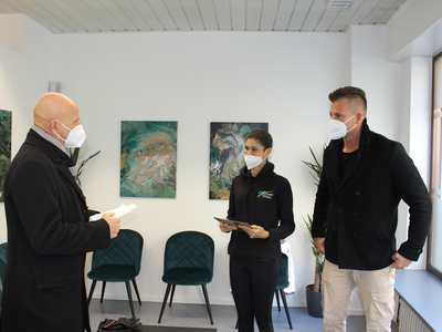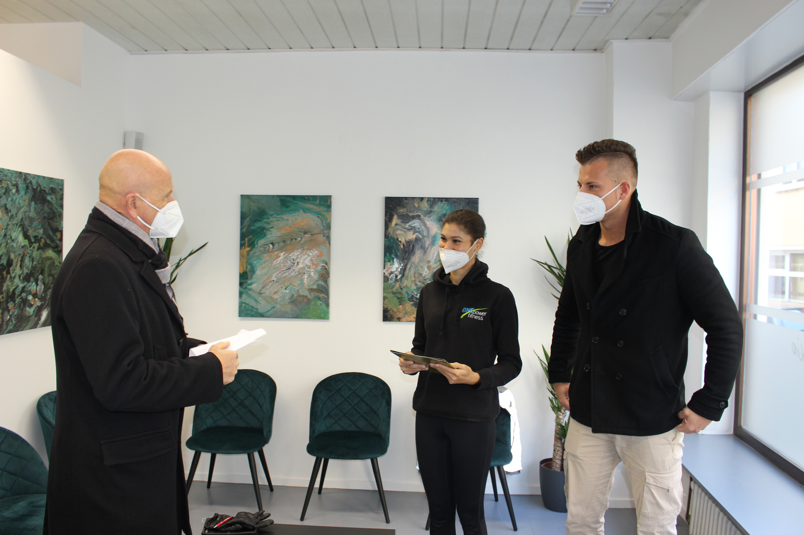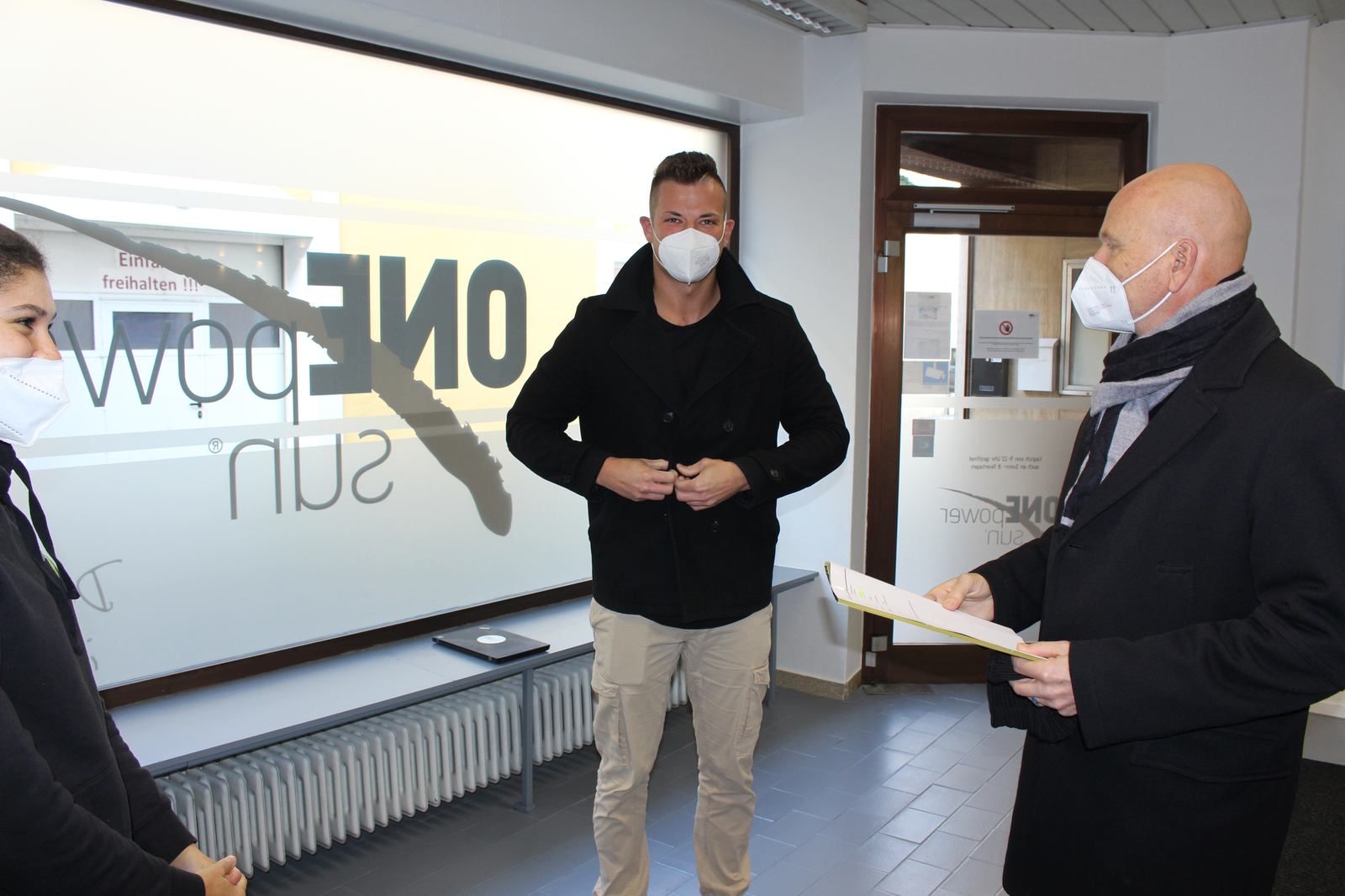 „Ich hab hier als Schüler noch eingekauft“, erinnerte sich Kevin Weichinger beim Willkommensbesuch des Bürgermeisters. Der 29-jährige ist bereits Gründer und Geschäftsführer des Fitnessstudios „ONE power fitness“, das sich nur wenige Schritte weiter in der Walterfingerstraße 11a befindet. Er zögerte deshalb nicht lange und mietete die Räume in der Lusteckstraße 6 an. „So kann ich meinen Kunden noch mehr Service anbieten und habe gleichzeitig ein Sonnenstudio für jeden, der das genießen möchte.“ Der ehemalige Schreibwarenladen ist nicht mehr zu erkennen: „Wir haben alles renoviert und modernisiert, damit es zu den neuen Anforderungen passt.“