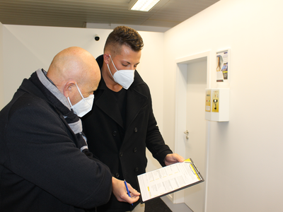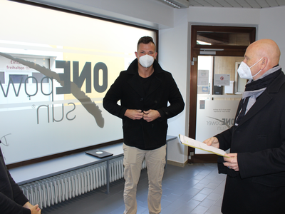 Im Hauptfoto oben von links Dr. Uwe Brandl, Sidney Bohler und Kevin Weichinger. In der Galerie Schnappschüsse vom Begrüßungstermin. Nochmals das Hauptmotiv.