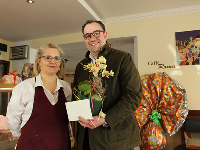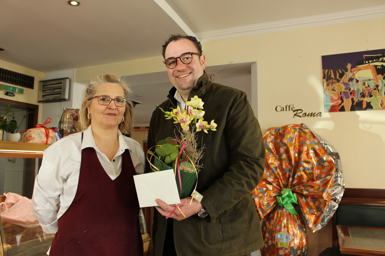 Grazia Mantella, deren Familie seit Jahrzehnten mit dem Ristorante Nuova Taormina für italienische Hochgenüsse in Abensberg sorgt, hat das ehemalige Café Max in der Ulrichstraße 14 zu neuem Leben erweckt. Das „Caffé Roma“ bietet Kaffee und Kuchen mit deutschen und italienischen Süßspeisen, Kuchen und Torten, kalte und warme Getränke und eine reichhaltige Frühstücksauswahl. Dazu gibt es mittags stets ein preiswertes Nudelgericht, auch zum Abholen. In Vertretung der Stadtspitze gratulierte Abensbergs 2. Bürgermeister Dr. Bernhard Resch Frau Mantella zur Eröffnung des Caffé Roma.