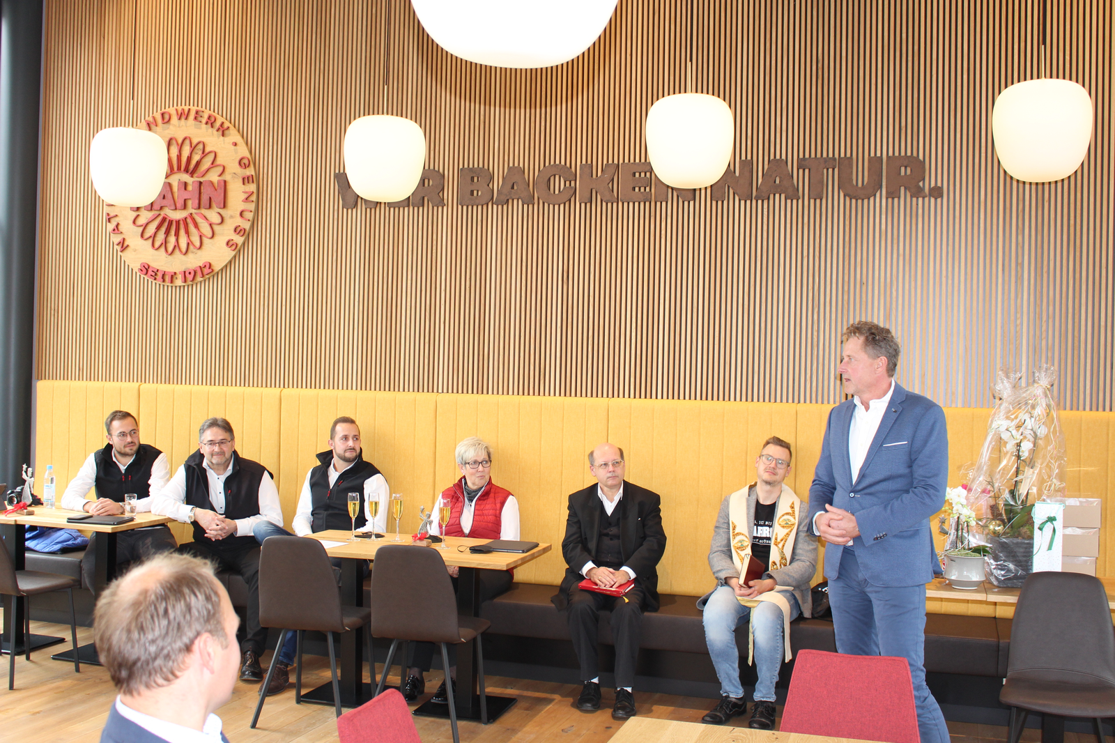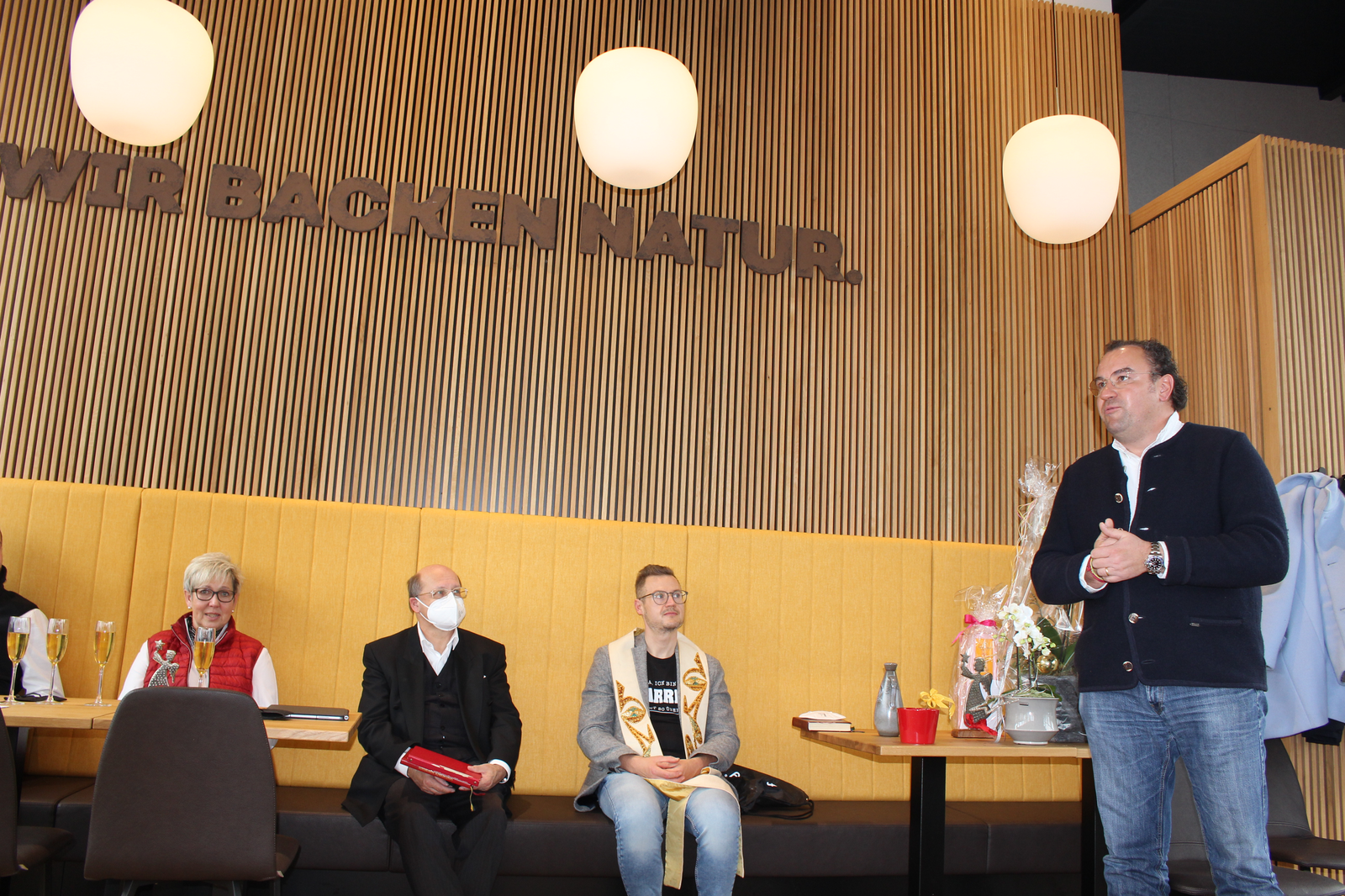 Bereits Anfang März wurde an markanter Stelle im Abensberger Stadtteil Offenstetten eine neue Bäckerei mit Café eröffnet. Betreiber ist die als „Gäubodenbäcker“ bekannte Familie Hahn aus Geiselhöring. „Wir sind damals direkt in den Lockdown gekommen“, so Rudi Hahn, der mit seiner Ehefrau Martina und den Söhnen Benedikt und Maximilian erst jetzt, im November zur Einweihung laden konnte. Die Stimmung war dennoch gut, denn: „Unser Angebot wurde gut angenommen“, so der Firmenchef. Abensbergs 2. Bürgermeister Dr. Bernhard Resch, der die Glückwünsche und Präsente der Stadt Abensberg überbrachte, freute sich: „Sie haben ein sehr schönes Café und einen weiteren Treffpunkt mit Strahlkraft über den Standort hinaus geschaffen.“ Er gratulierte der Unternehmerfamilie ebenso wie Stefan Neumeyer, der die Idee einer Bäckerei mit Café an die Hahns heran getragen hatte.