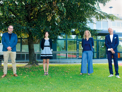 Im Bild von links Schulrat Andreas Lindinger, Konrektorin Stefanie Haberl, Rektorin Liane Köppl und 1. Bürgermeister Dr. Uwe Brandl.