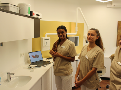 Neben einem Rundgang durch die neue, moderne Praxis konnten sich die Gäste an einem Prophylaxe-Stand informieren und einen gratis 3D- Scan an ihrem Gebiss durchführen lassen, was für Aufsehen sorgte. Außerdem gab es eine Bastelecke für Kinder, eine Tombola und ein Catering mit leckeren Häppchen und Getränken – und gute Laune allerorten, ob im Empfangsraum oder in den einzelnen, schönen Zimmern. Frau Dr. Spangler bedankte sich in ihrer kurzen Ansprache nochmals bei Zahnarzt Dr. Berger, bei dem sie früher als Zahnärztin angestellt war und seine Praxis übernehmen konnte. Die gebürtige Regensburgerin studierte an der dortigen Universität Zahnmedizin. Als angestellte Zahnärztin arbeitete sie in verschiedenen allgemeinzahnärztlichen, oralchirurgisch und kieferorthopädisch tätigen Praxen und bietet deshalb heute ein weites Behandlungsspektrum an.