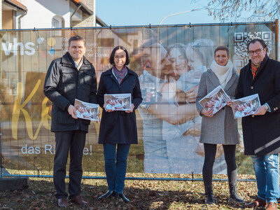 Bei strahlendem Sonnenschein trafen sich die Bürgermeister Thomas Memmel (Neustadt an der Donau) und Dr. Bernhard Resch (Abensberg) mit ihren beiden Volkshochschulleiterinnen vorm frisch gedruckten Werbebanner für das neue Frühjahrs- und Sommerprogramm. Andrea Holzapfel und Katrin Koller-Ferch haben mit ihrem Team wieder ein umfangreiches und vielfältiges Kursprogramm erarbeitet, das bereits auf der Homepage genauer einzusehen ist.