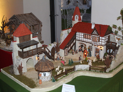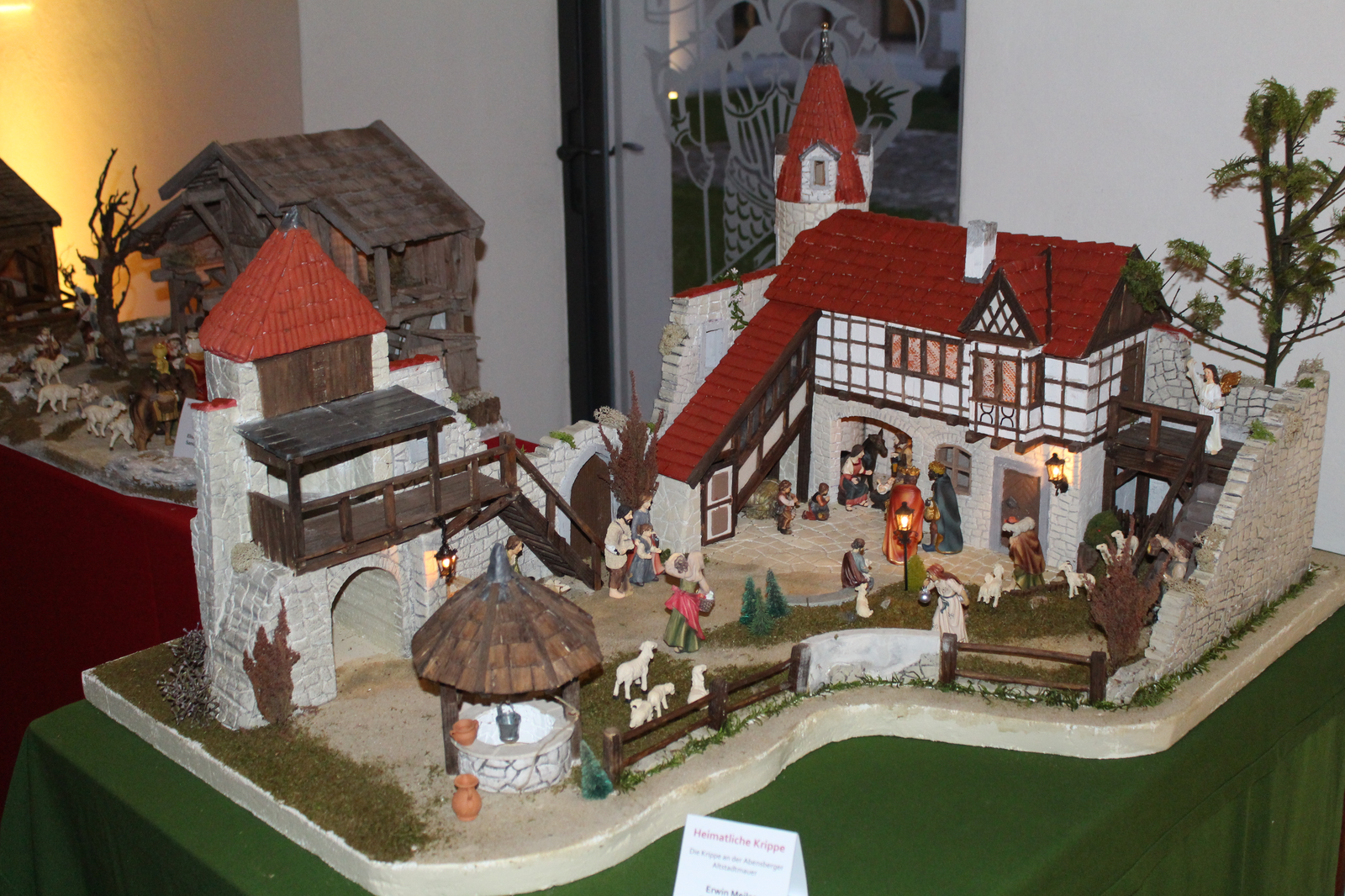 Den Grundstock für die Exponate bilden wieder zahlreiche Krippen, die in den beiden Werkkursen im Frühjahr und im Herbst angefertigt wurden. Zusammen mit vielen Hauskrippen füllen nun rund 35 Krippen zwei Flügel des Kreuzgangs. Eine besondere Augenweide ist dabei die Hauskrippe von Erwin Meiler direkt beim Eingang, die das Anwesen der Familie Krinninger an der Abens mit dem bekannten Maderturm und einem weiteren Stadtturm zeigt.