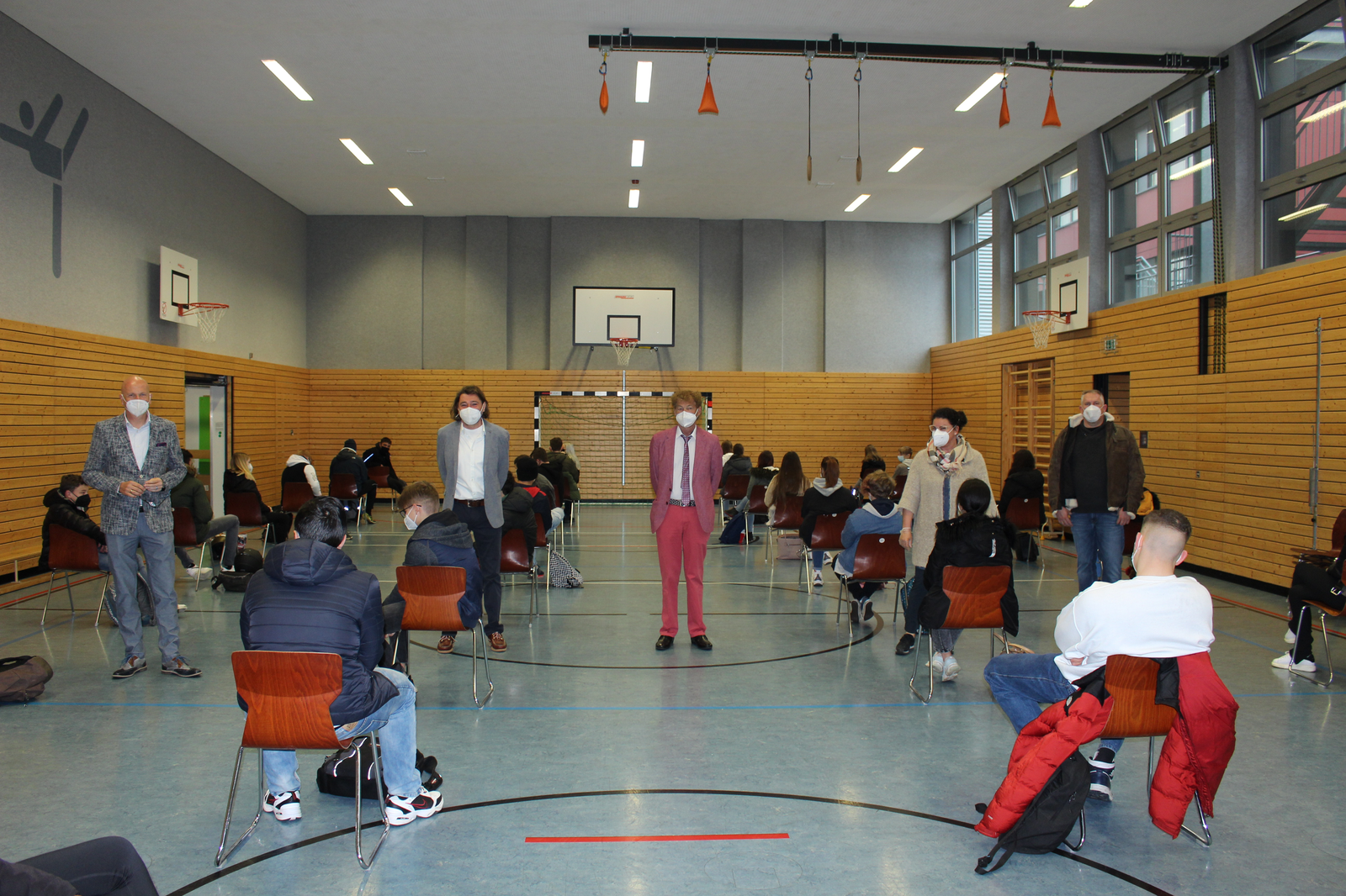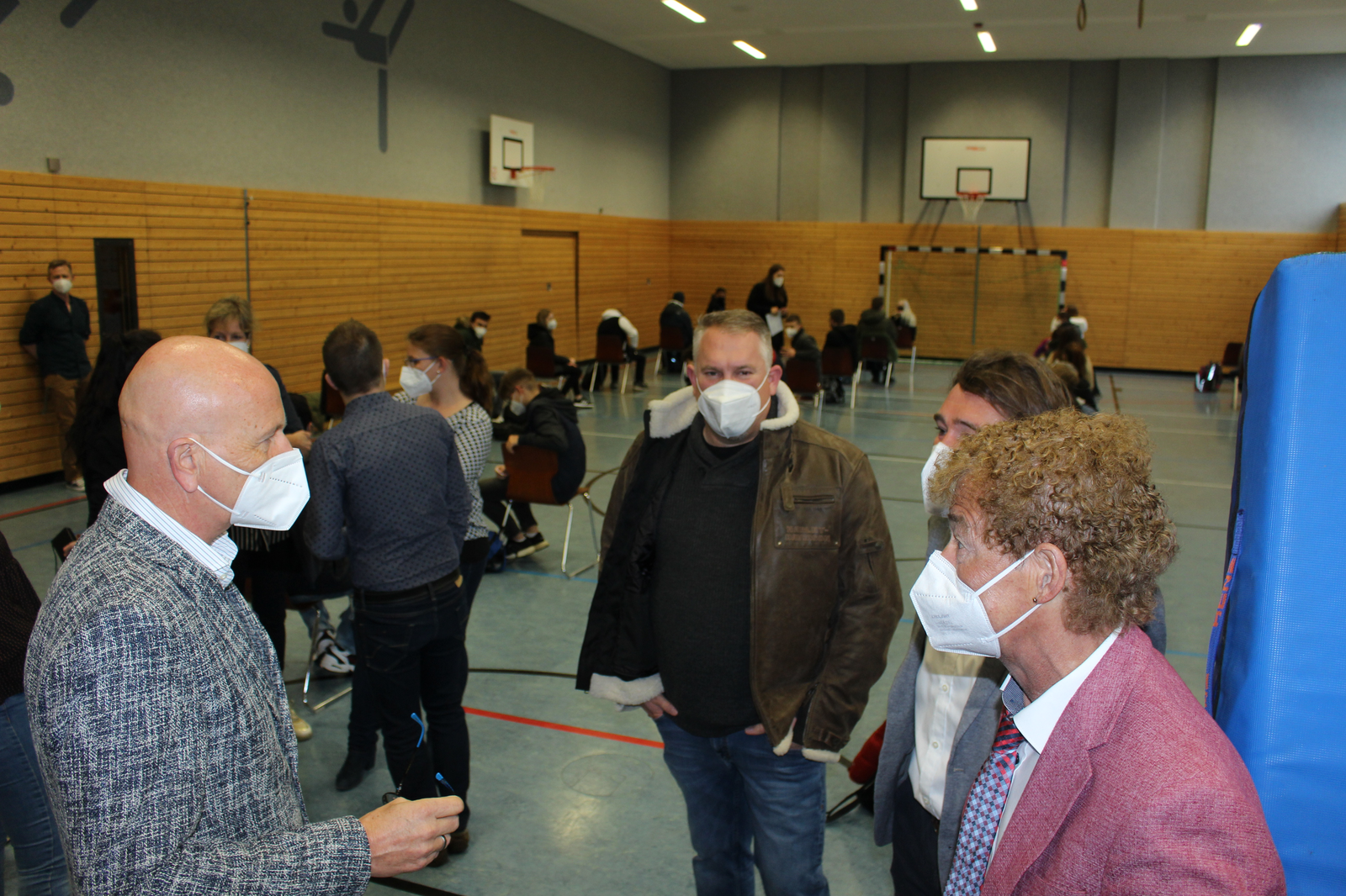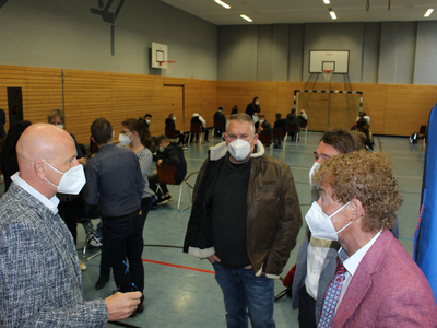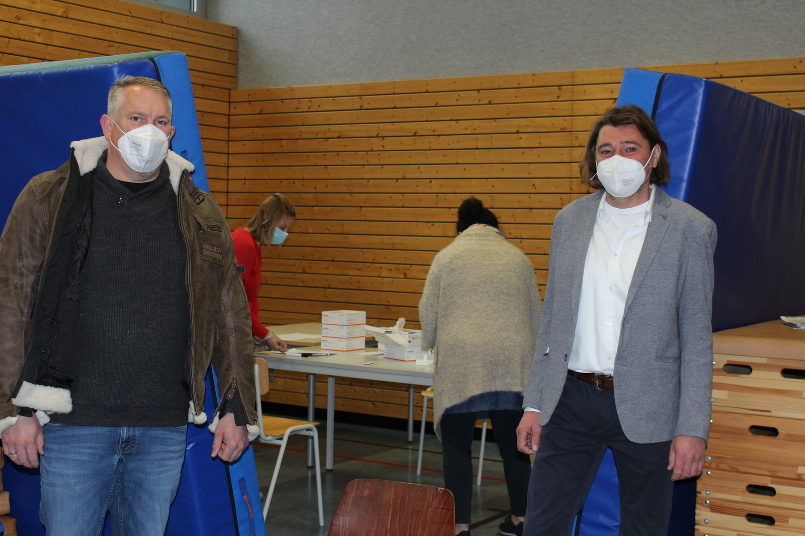 Die Testungen wurden in einer eigens dafür hergerichteten Schulturnhalle erledigt. Brey hat auch eine ausgebildete Krankenschwester gewinnen können: „Ich bin Sabine Maluche sehr dankbar, dass sie sich die Zeit nimmt.“ Er hätte sich nicht vorstellen können, dass „nicht ausgebildete Leute“ die Testungen vornehmen. „Unsere Schüler sollen die Gewissheit haben, dass wir medizinisch einwandfrei auftreten.“