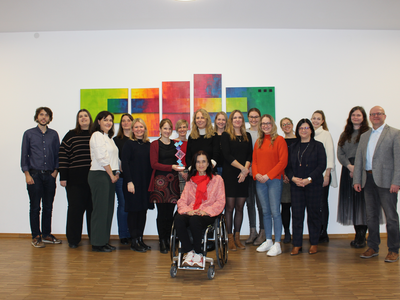 In der Galerie ein Bild mit nahezu allen Beteiligten - von links: Sebastian Köppl, Diana Metz, Alison King, Katrin Bopp, Sonja Senst, Verena Ochmann, Sylvia Rengstl, Liane Köppl, Valerie Ullrich, Stefanie Seidel, Laura Heid, Romy Mulitze, Martina Sommerer, Brigitte Schönhofer-Bohrer, Julia Siller, Joséphine Stüllenberg, Michael Kugler und vorne 3. Bürgermeisterin Marion Huber-Schallner.