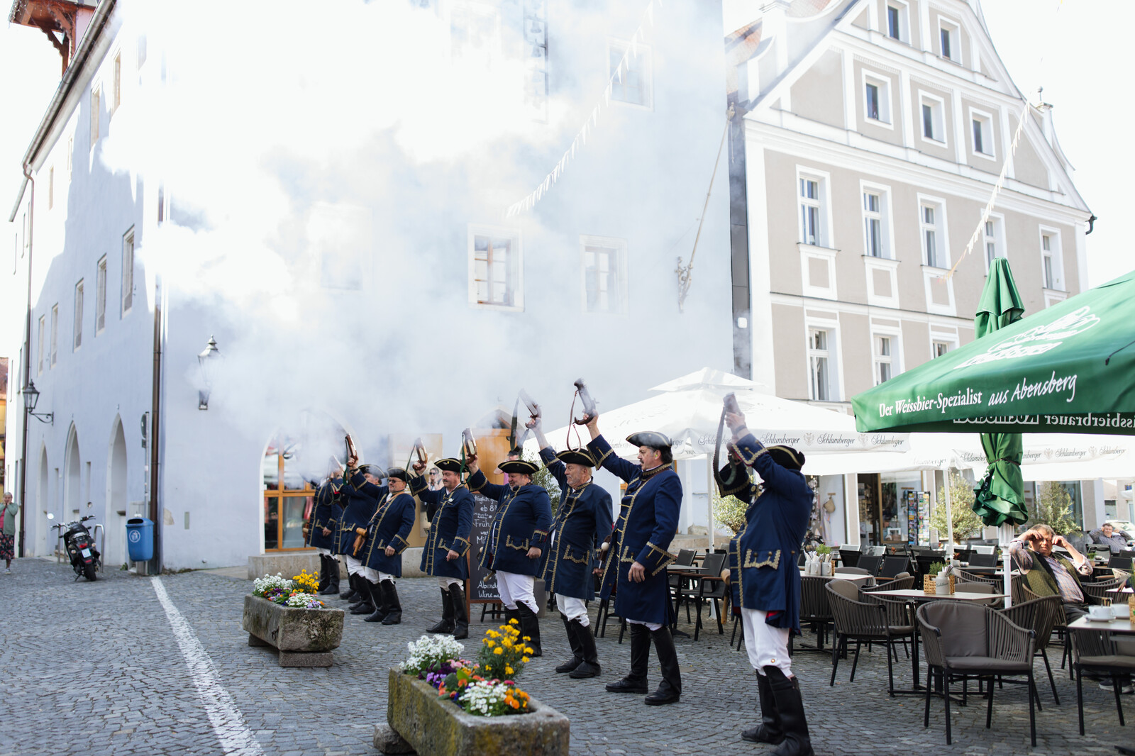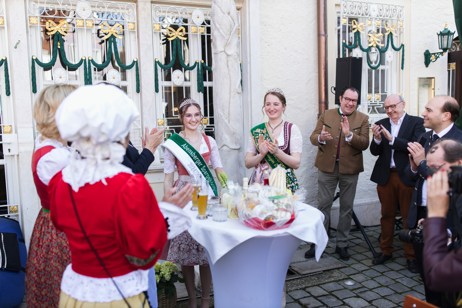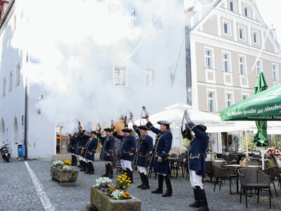 Traditionell ging es am Stadtplatz weiter. Die Marmor-Spargelstatue beim Brauereigasthof Kuchlbauer wurde enthüllt und die Abensberger Böllerschützen leiteten die Saison nochmal offiziell ein.
