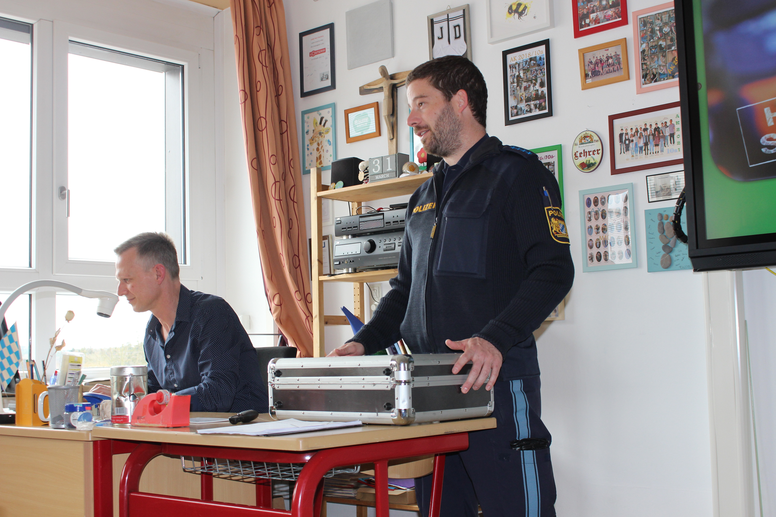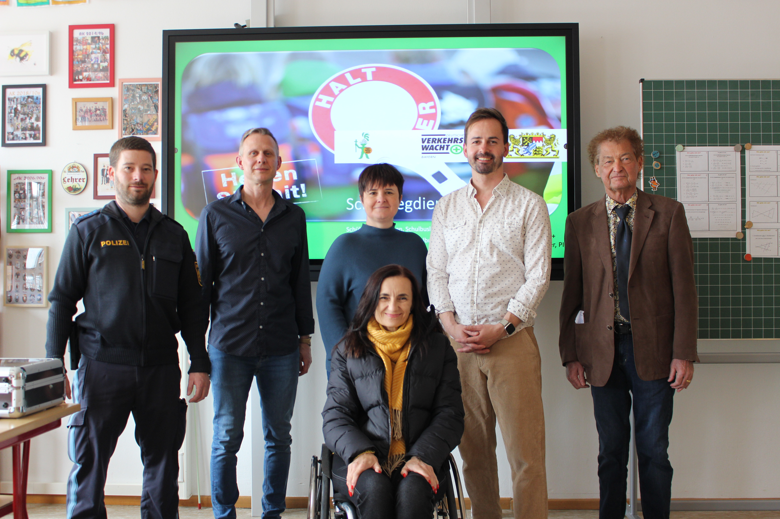 Im Bild oben ein Probe-Einsatz in der Römerstraße. In der Galerie im ersten Bild Polizeihauptmeister Andreas Odvody, Studienrat Jürgen Deinlein, Kinga Krauter, Matthias Kernstock und Rektor Wolfgang Brey, vorne 3. Bürgermeisterin Marion Huber-Schallner. Im zweiten Bild der Galerie von links Rektor Wolfgang Brey, Polizeihauptmeister Andreas Odvody, Susanne Treitinger, Stefanie Ramsauer, Studienrat Jürgen Deinlein. Im dritten Bild der Galerie der Verkehrserzieher des Landkreises im Gespräch, im vierten Bild im "Unterricht mit Jürgen Deinlein. Nochmals das Hauptmotiv. Fotos: Ingo Knott.