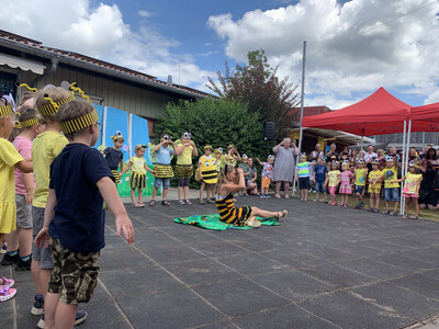 Frau Dumm am Abend: „Die Kinder, Eltern und Erzieher haben sich tierisch auf das Fest gefreut. Das Feedback bei uns und dem Elternbeirat war durchgehend positiv und es hat allen sehr gut gefallen. Schön war vor allem die ausgelassene Stimmung.“ Auch Abensbergs 1. Bürgermeister Dr. Uwe Brandl kam vorbei und gratulierte zum gelungenen Sommerfest.