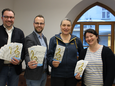 Im Foto von links 1. Bürgermeister Dr. Bernhard Resch, Kulturreferent Niklas Neumeyer, Katharina Keglmaier von der Musikwerkstatt und Melanie Schlauderer von der Stadt Abensberg mit dem neuen Programm. Der Flyer liegt an vielen Stellen in Abensberg und Umgebung aus.
