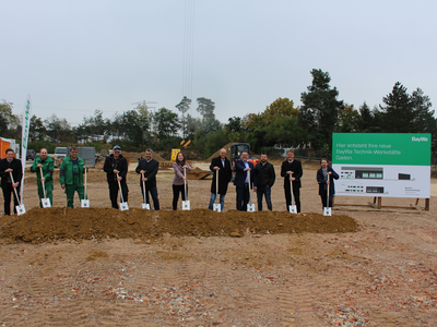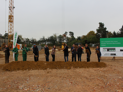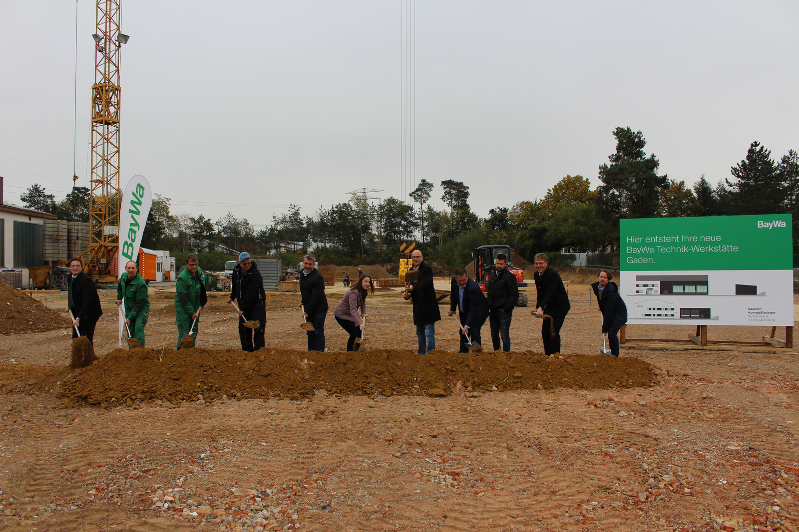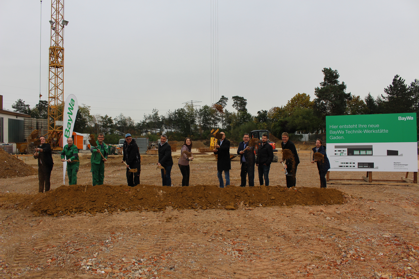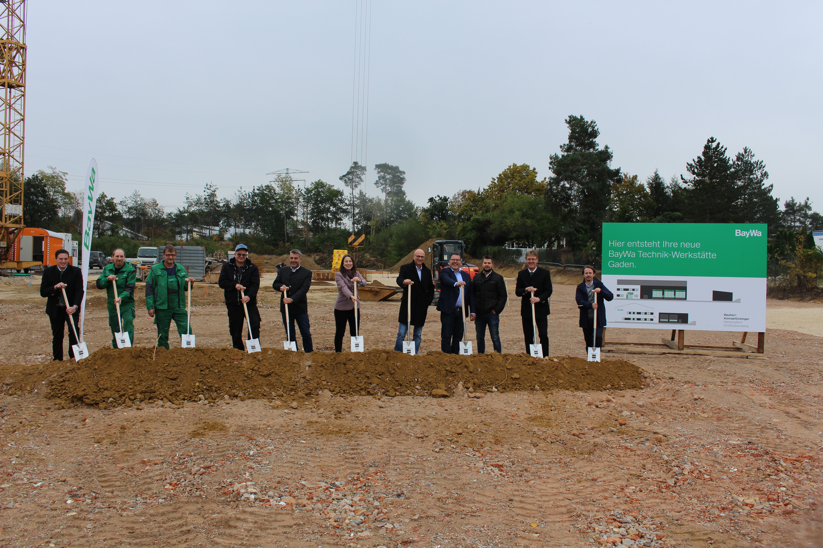 Das Hauptfoto oben entstand beim Spatenstich am 19. Oktober 2021 in der Werkstraße in Gaden und zeigt von links: Georg Meier (BayWa Regionalleiter Ostbayern Mitte), Michael Biberger (BayWa Leiter Werkstatt Abensberg), Johann Geser (BayWa Leiter Werkstatt Langquaid), Markus Weigl (Bauunternehmer), Armin Kolditz (BayWa Leiter Service und Parts), Dr. Marlen Wienert (BayWa Leiterin Geschäftsbereich Agrar/ Technik), Dr. Uwe Brandl (1. Bürgermeister von Abensberg), Konrad Eichinger sen. und jun. (Investor), Heribert Schulte (BayWa Spartengeschäftsführer Agrar/Technik Ostbayern) und ganz rechts Markus Otte (Projektleiter).