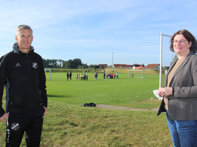 Im ersten Bild der Galerie Christian Rengstl, Jugendleiter bei der TSV-Fußballabteilung, mit Rektorin Andrea Brandl. Im dritten Bild der Galerie Rektorin Brandl mit August Schedl von der TSV-Tennisabteilung.