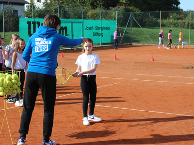 Rund 50 Kinder trainierten spielerisch an der Stadionstraße; dieselbe Anzahl war zur selben Zeit im Freizeitzentrum der Josef Stanglmeier-Stiftung damit beschäftigt, in den Tennissport reinzuschnuppern. Das heißt zuerst einmal ein Gefühl für den Tennisball zu bekommen und schließlich auch, ihn mit dem Schläger übers Netz zu schlagen. Auch hier war die Freude enorm. Grundschulrektorin Andrea Brandl: „So ein Tag ist nicht nur gesund. Die Kinder haben Spaß und entdecken vielleicht eine Sportart für sich.“ Gerade die Pandemie-Ereignisse hätten körperliche Bewegung nicht gerade gefördert. Deshalb sei ein so „spielerischer Sport-Tag“ genau richtig. Für den TSV war der Tag eine Möglichkeit, Nachwuchs zu gewinnen.