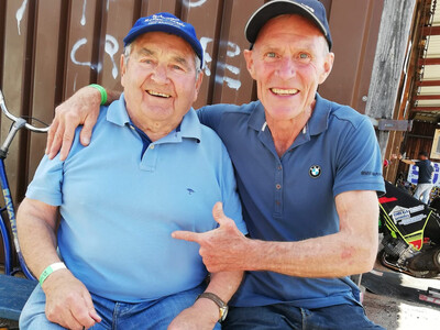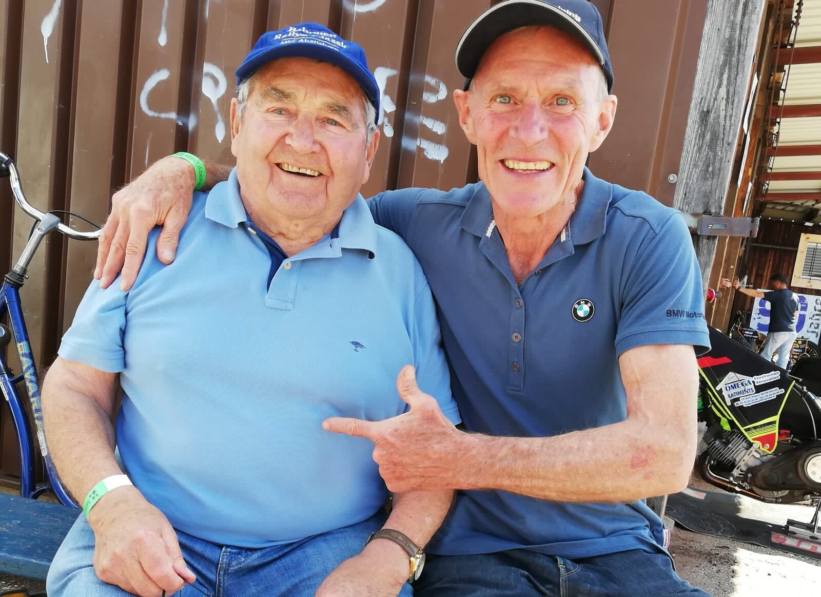 In der Galerie Wack Hofmeister mit Ex-Weltmeister Karl Maier beim Pfingstrennen 2022 in Abensberg. Nochmals das Hauptbild.