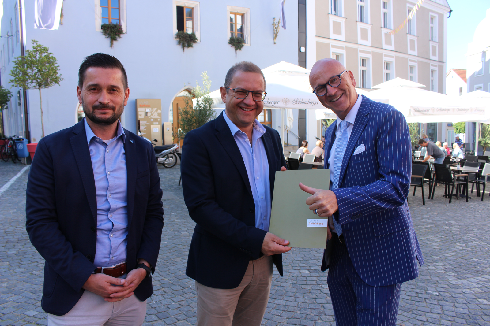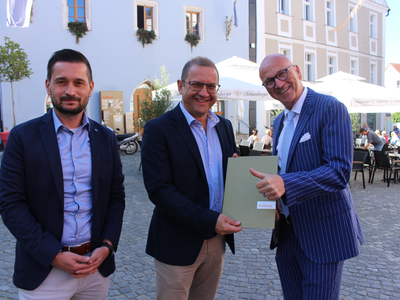Im Bild oben Peter Schmid (mi.) mit Dr. Uwe Brandl (re.) und Hauptamtsleiter Andreas Müller. Nochmals in der Galerie. Foto: Ingo Knott, Stadt Abensberg.