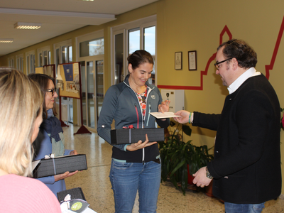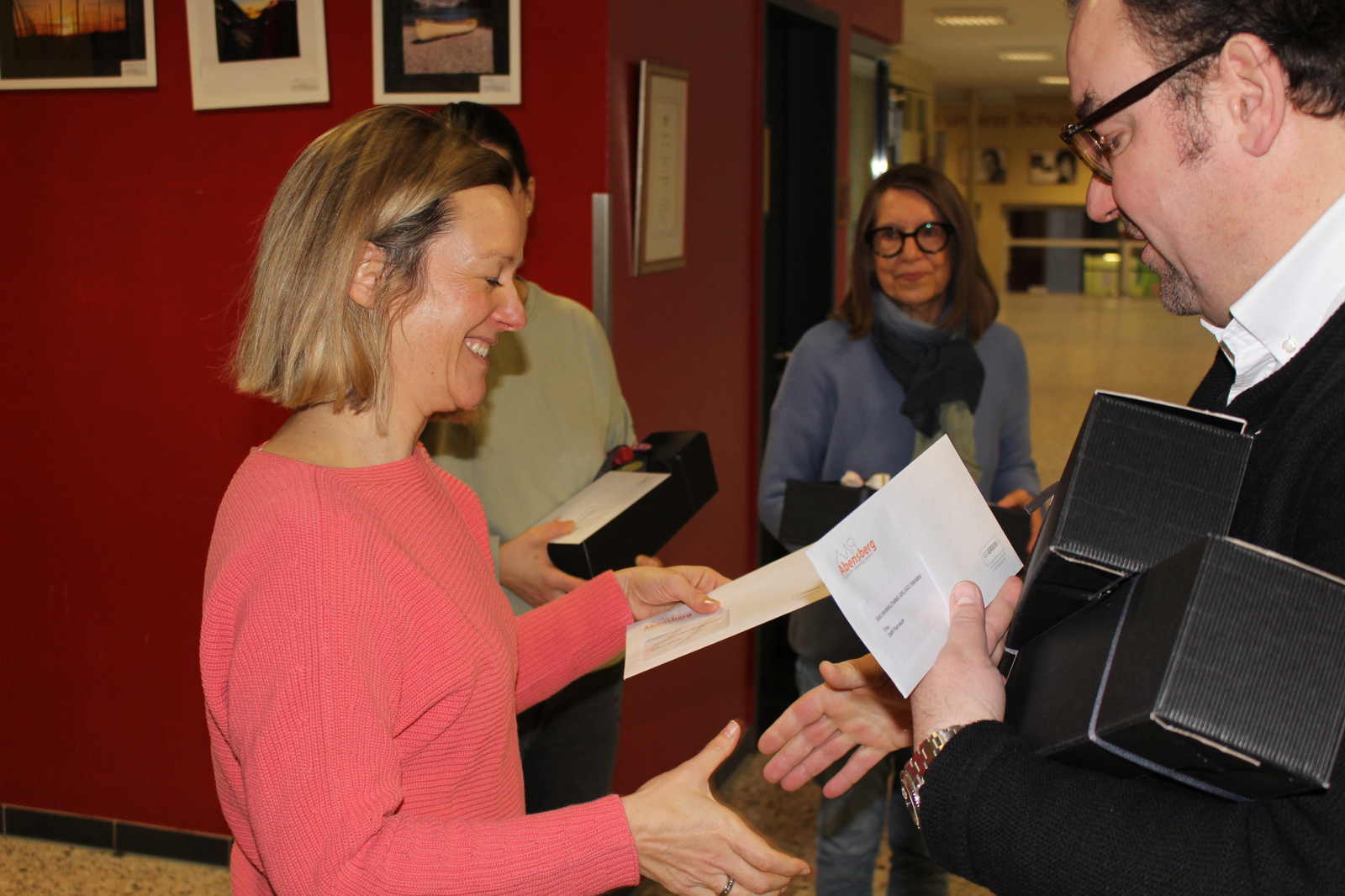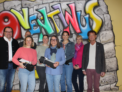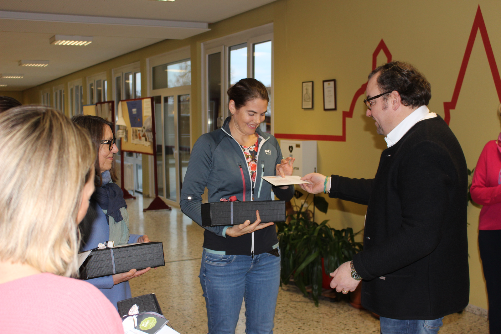 Im Hauptbild von links: 1. Bürgermeister Dr. Bernhard Resch, Lehrer Jürgen Deinlein (leider etwas verdeckt), vor ihm Susanne Treitinger, Karin Oberhofer, Sonja Schröter, Stefanie Ramsauer, Konrektorin Kathrin Kiermeier und Rektor Wolfgang Brey. Schnappschüsse von der Übergabe in der Galerie und nochmals das Hauptmotiv. Text, Fotos: Ingo Knott, Stadt Abensberg.
