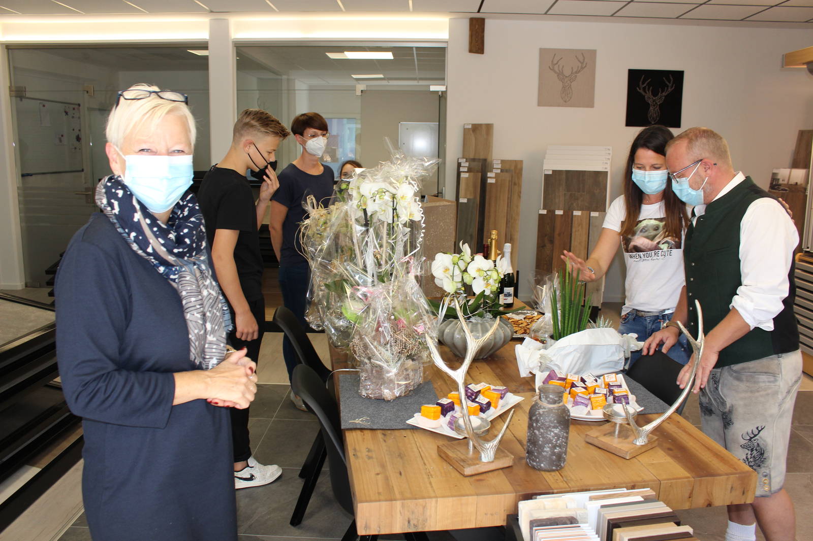 Abensbergs 2. Bürgermeister Dr. Bernhard Resch hat Anfang Oktober dem Unternehmer Thorsten Pesl und seiner Familie herzlich zum Umzug des Fliesenfachbetriebs gratuliert und die Glückwünsche der Stadt Abensberg überbracht. Pesl, der sich vor 17 Jahren als Fliesenleger selbständig gemacht hatte, ist mit seinem Team mitsamt nagelneuer Fliesenausstellung nun bei Johann Lengger in der Rudolf-Diesel-Straße 16 in Gaden ansässig – und beide Unternehmen ergänzen sich perfekt. Pesl: „Ein Parkplatz, fünf Gewerke – das hat unseren Kunden schon in der Umzugsphase sehr gefallen“, lacht er.