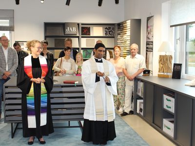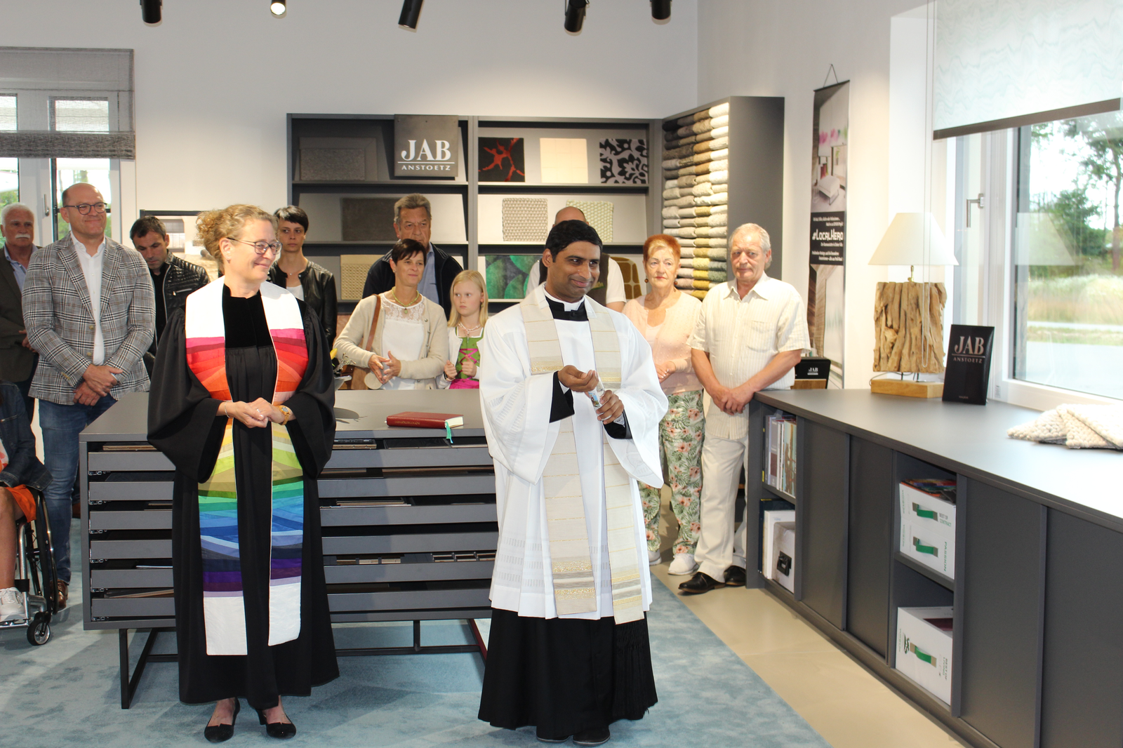 Abensbergs Kaplan Velangini Reddy Nagireddy und Pfarrerin Barbara Dietrich sorgten mit Gebeten und Ansprachen und der Segnung der Räumlichkeiten für Momente der Andacht. Kaplan Nagireddy betonte, es sei „nicht nur ein netter Brauch, sondern ein wirklich sinnvoller Gedanke: Ein Segen bei Wendepunkten oder wichtigen Abschlüssen im Leben. Pfarrerin Dietrich sagte, es sei „derzeit umso schöner, wenn es etwas Erfreuliches gibt“. Sie freue sich sehr, wieder einmal in Abensberg zu sein.