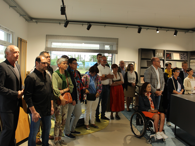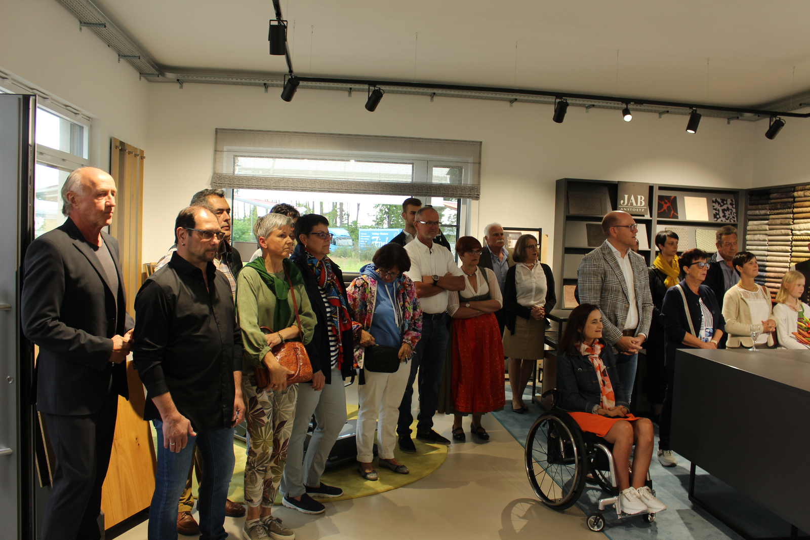 Abensbergs 1. Bürgermeister Dr. Uwe Brandl hat Günther und Korbinian Huber zum eindrucksvollen Neubaukomplex in Gaden gratuliert. Nach über 30 Jahren in der Innenstadt hat sich die Firma „Raum & Idee Huber“ damit am neuen Standort fit für die Zukunft gemacht. Vier freistehende Häuser, gruppiert um einen Innenhof, stechen im Industriegebiet hervor. Und es war, so Raumausstatter Korbinian Huber, „die richtige Entscheidung, jetzt zu investieren.“ Gemeinsam mit seinem Vater, dem Geschäftsgründer und Raumausstattermeister Günther Huber, hat er sich zum Neubau entschlossen – und das freut auch Abensbergs 1. Bürgermeister. „Damit seid ihr super aufgestellt“, gratulierte Dr. Brandl. Und freute sich, dass mit dem 33-jährigen Sohn schon ein erfahrener Nachfolger bereit steht. Acht Mitarbeiter, davon zwei Raumausstatter-Azubis, gehören zum Team. Auch das ist keine Selbstverständlichkeit, betonte Dr. Brandl bei der Segnung, die am Freitagabend (1. Juli 2022) erfolgte.