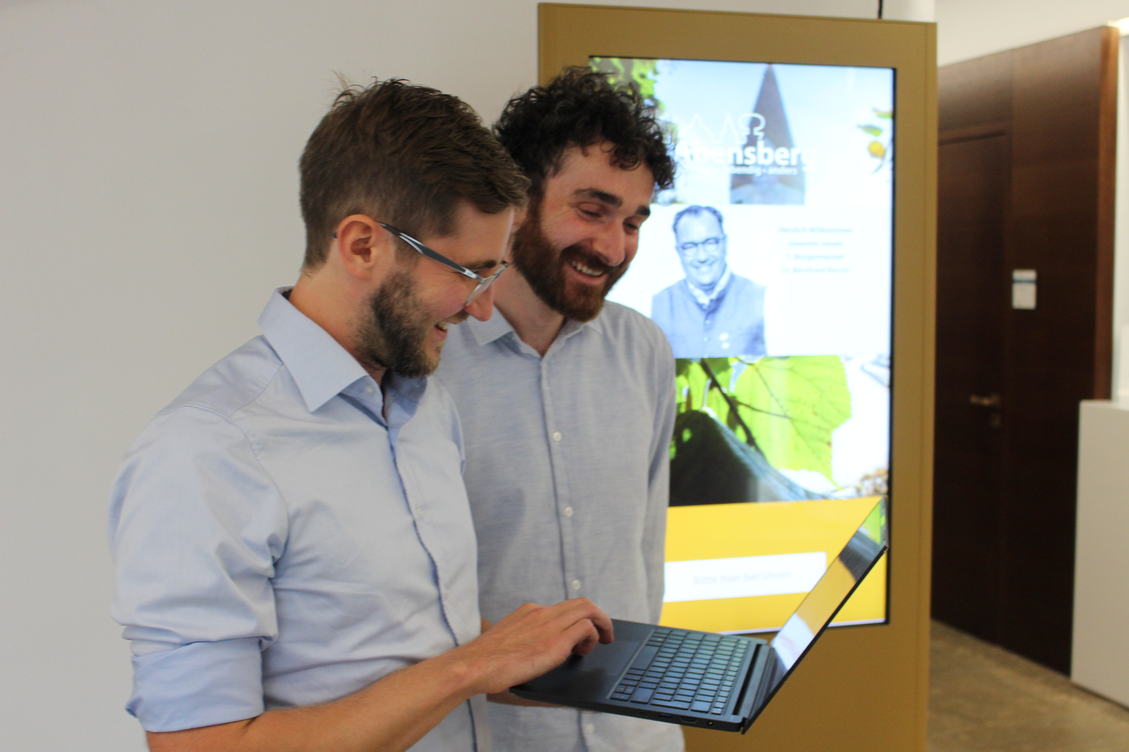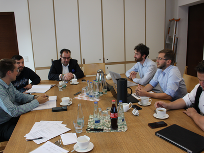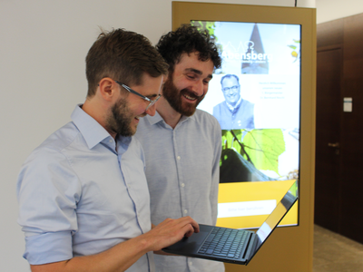 Im Bild oben Dr. Thomas Plankenbühler und Dr. Sebastian Kolb von der Planungsfirma. In der Galerie eine Arbeitssitzung mit 1. Bürgermeister Dr. Bernhard Resch, Stadtbaumeister Blerim Syla, Stadtwerkeleiter Dr. Rainer Reschmeier und den prosio-Fachleuten.