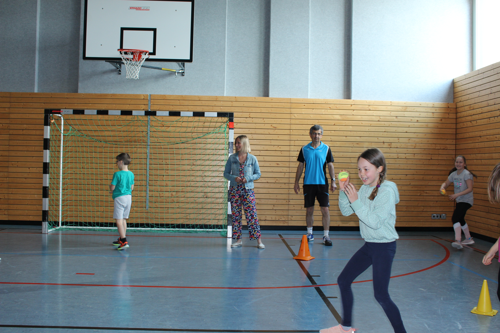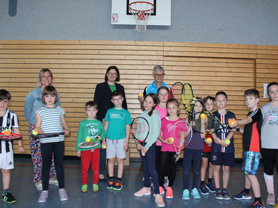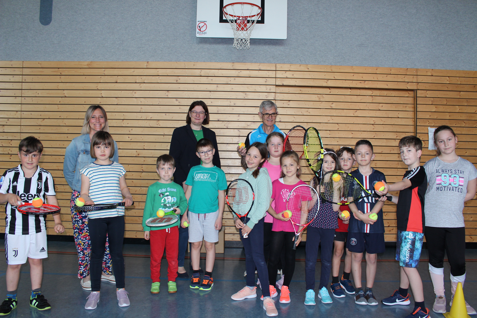 „Das sind schöne und vielfältige Sportstunden“, freut sich die Sportbeauftragte, die am Dienstag als Klassenlehrerin „ihre“ 2B in die Tennis-Schnupperstunde brachte. Auch da gab es natürlich ganz viel Spaß für die kleinen Leute – denn das soll Sport ja auch machen. Außerdem, so Frau Neumaier, sei es wichtig, den Vereinen nach den Corona-Lockdowns Möglichkeiten zur Mitgliedergewinnung anzubieten. Rektorin Andrea Brandl jedenfalls ist vollauf überzeugt von dem Konzept, das im letzten Jahr beim TSV selbst durchgeführt wurde. „Die Kinder sind richtig neugierig, was auf sie zukommt“, so Frau Brandl.