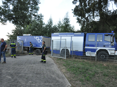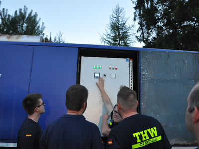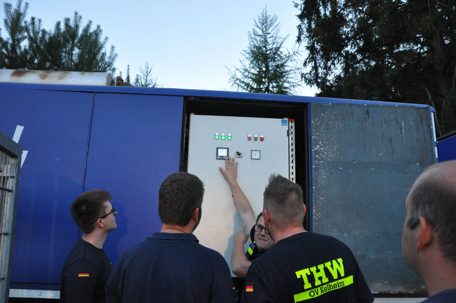 Im Rahmen einer Übung des THW Ortsverbands Kelheim wurde am Donnerstag, 11. August 2022, die Einspeisung von Notstrom für die beiden Brunnen der Stadtwerke Abensberg erfolgreich getestet. Hierfür rückte das THW mit einem 250 kVA-Notstromaggregat an. Zielsetzung der Übung war auszuprobieren, ob alle Abläufe reibungslos funktionieren. Das beginnt schon bei einfachen Fragestellungen, wie beispielsweise, ob die Kabellänge ausreichend ist und wo das Notstromaggregat hingestellt werden soll. Dies lässt sich in der Theorie zwar alles vorab festlegen, in der Praxis ist die Situation jedoch oft eine andere und es treten unerwartete Widrigkeiten auf.