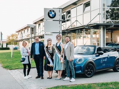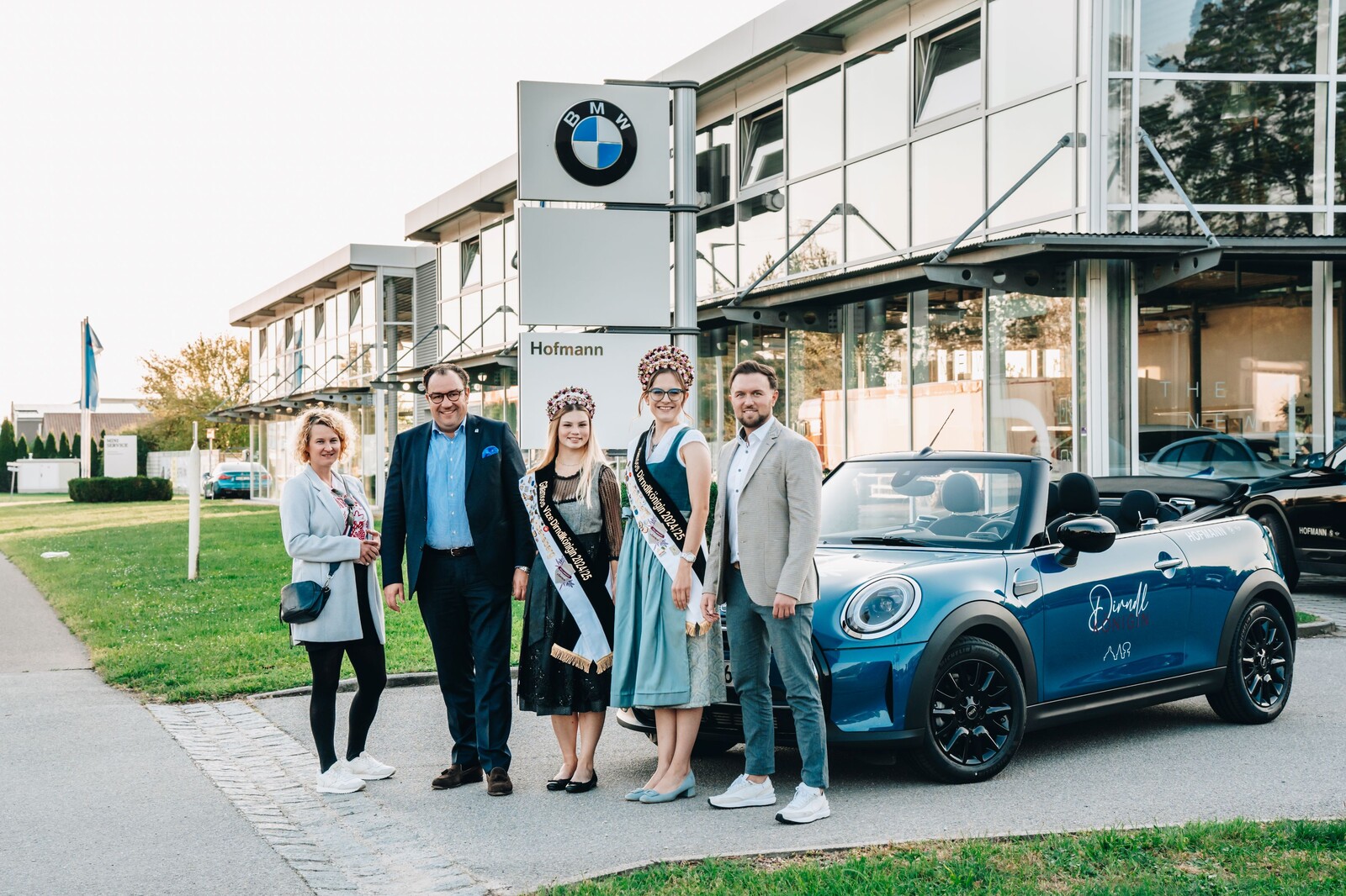 Auf dem Titelbild v.l.n.r. Carolin Wohlgemuth (Sachgebietsleitung Stadtmarketing, Wirtschaftsförderung und Tourismus Stadt Abensberg), Dr. Bernhard Resch (1. Bürgermeister Stadt Abensberg), Lisa Niebler (52. Gillamoos Vize-Dirndlkönigin), Sophia Kellner (52. Gillamoos Dirndlkönigin), Dominik Bergstein (Filialleiter BMW | MINI Autohaus Hofmann Abensberg)