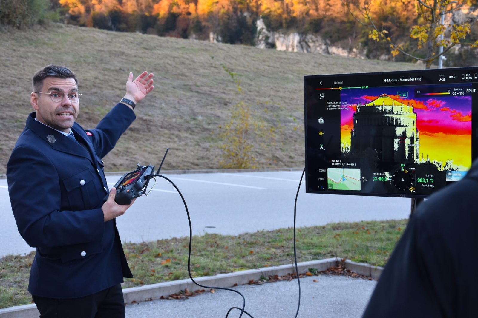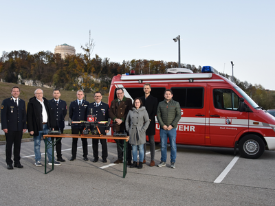 Am Mittwoch (08.11.) hat Landrat Martin Neumeyer im Beisein von Abensbergs 1. Bürgermeister Dr. Bernhard Resch und Kreisbrandrat Nikolaus Höfler eine Drohne an die Feuerwehr der Stadt Abensberg übergeben. Am Parkplatz des Landratsamtes Kelheim konnten sich die Anwesenden von der Leistungsfähigkeit der Drohne überzeugen lassen.