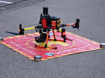In der Galerie: Am Parkplatz des Landratsamtes Kelheim konnten sich die Anwesenden von der Leistungsfähigkeit der Drohne überzeugen lassen. Nochmals das Hauptbild.
