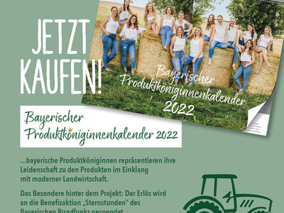 Abensbergs amtierende Spargelkönigin Katharina Maier freut sich - ihre Idee, einen Kalender mit den Produkt-Königinnen Bayerns zu erstellen, ist auf fruchtbaren Boden gefallen. Im Deutschen Landwirtschaftsverlag wird erstmalig der Bayerische Produktköniginnenkalender 2022 angeboten; der Erlös geht an die Benefizaktion "Sternstunden" des Bayerischen Fernsehens.