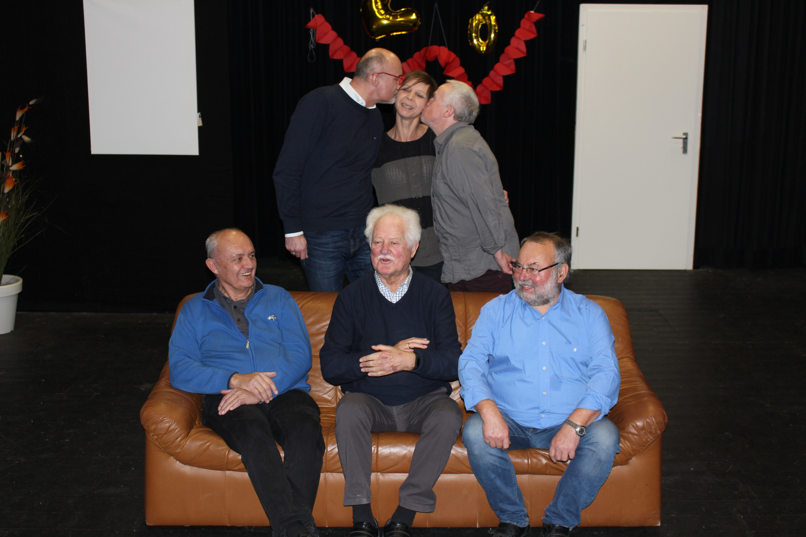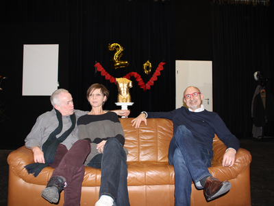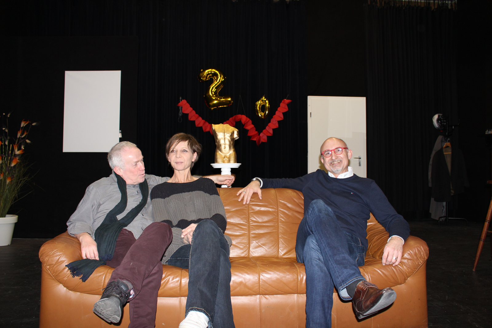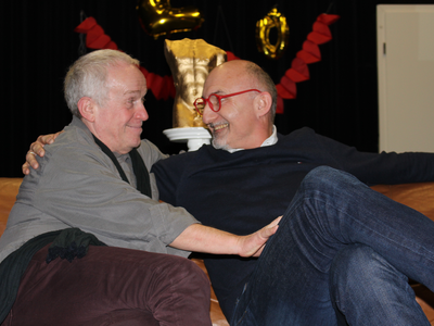 Weiter geht es dann im Theater am Bahnhof mit dem Stück „Die Sascha-Falle“ nach Martina Nowatzyk und Uli Sandau. Ein Zwei-Personen-Stück, allerdings ohne den Sascha im Titel. Oder kommt der doch? Arno und Ben jedenfalls, seit 20 Jahren ein Paar und deshalb zum romantischen Dinner bei Kerzenschein beisammen, sitzen beide in der „Sascha-Falle“, denn dieser Sascha scheint ein ganz attraktives Kerlchen zu sein. Beide sind ihm heimlich zugetan, und da - es klingelt an der Tür. „Dann machen wir erstmal Pause“, lacht Schmid.